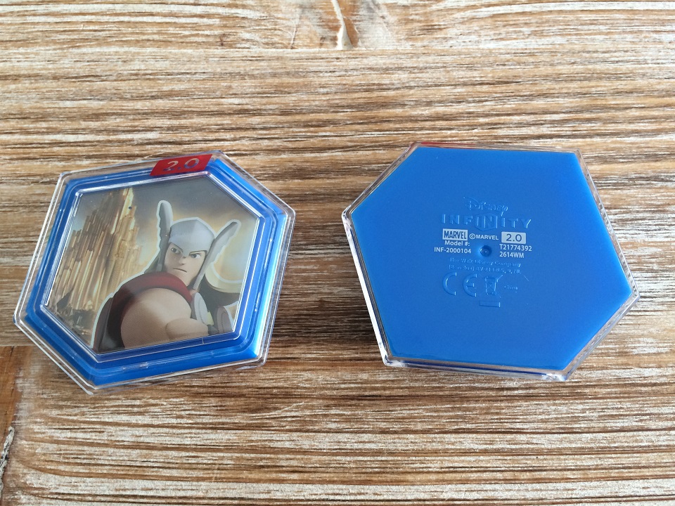 Deux Power Disc sont également inclus dans ce pack. Leur forme change par rapport à ceux de Disney Infinity 1.0. Pas d’inquiétude pour les reconnaitre, un gros 2.0 rouge est affiché dessus et à l’arrière du Power Disc.