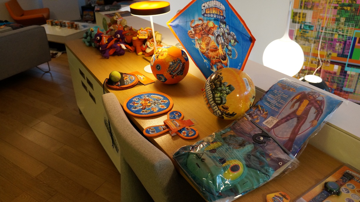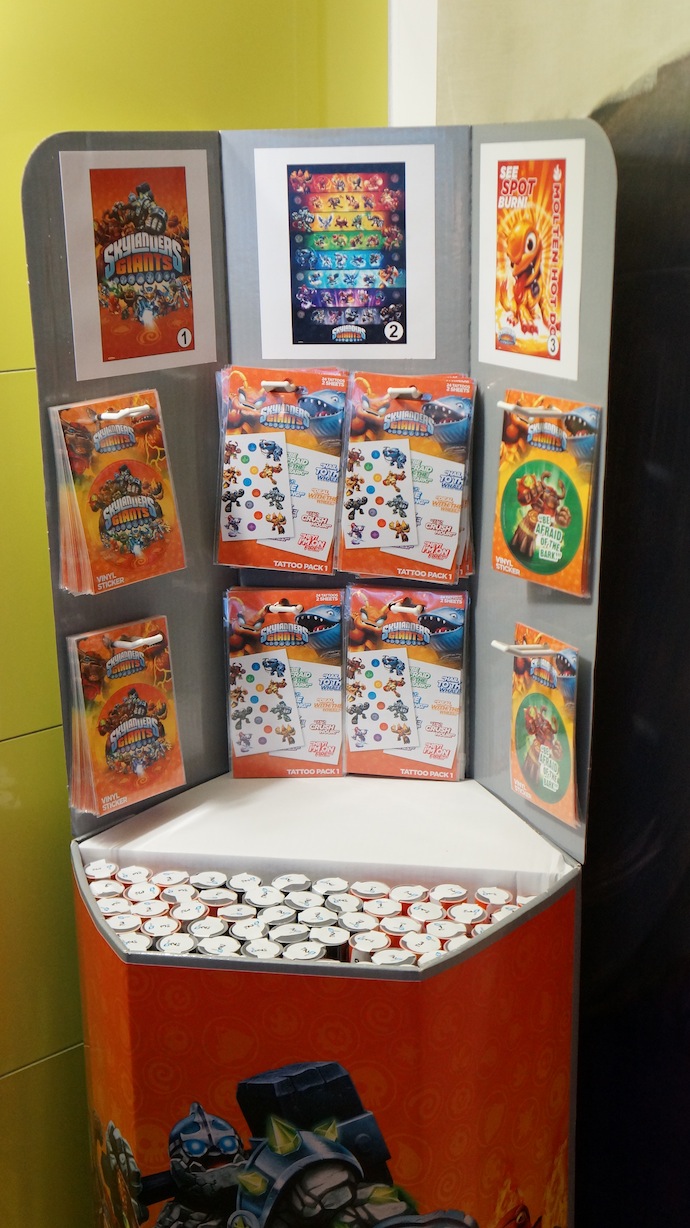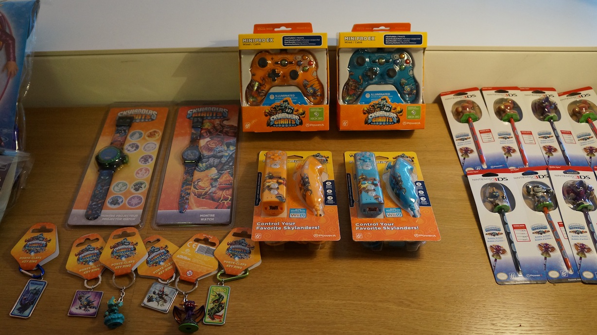Du coté des produits dérivés, préparez-vous à l’avalanche pour la rentrée. Sac à dos, cartables, trousses, skate, stylos, il y aura du Skylanders à toutes les sauces pour la joie des enfants … et des parents. Mention spécial au système de rangement que l’on peut accrocher à sa porte de chambre ou comment joindre l’utile à l’agréable. Je vous laisse regarder ces quelques photos prisent au sein du Skylab qui vous donneront une idée de l’étendue des produits Skylanders.