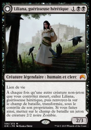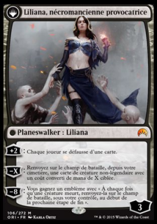 Qu’avons nous au rayon des nouveautés avec Magic Origines ? Déjà au niveau de l’histoire, on revient aux basiques à l’instar de Xmen Origines. Le bloc Magic Origins raconte les origines des planeswalkers Jace, Chandra, Nissa, Gideon et Liliana, avant et après leur transformation en planeswalkers. Et cela impacte directement le jeu en introduisant un nouveau type de carte recto verso. A la base une carte classique avec une condition pour la retourner. Et ô joie, c’est la forme Planewalker qui apparait si l’on valide à la condition de la face de départ.