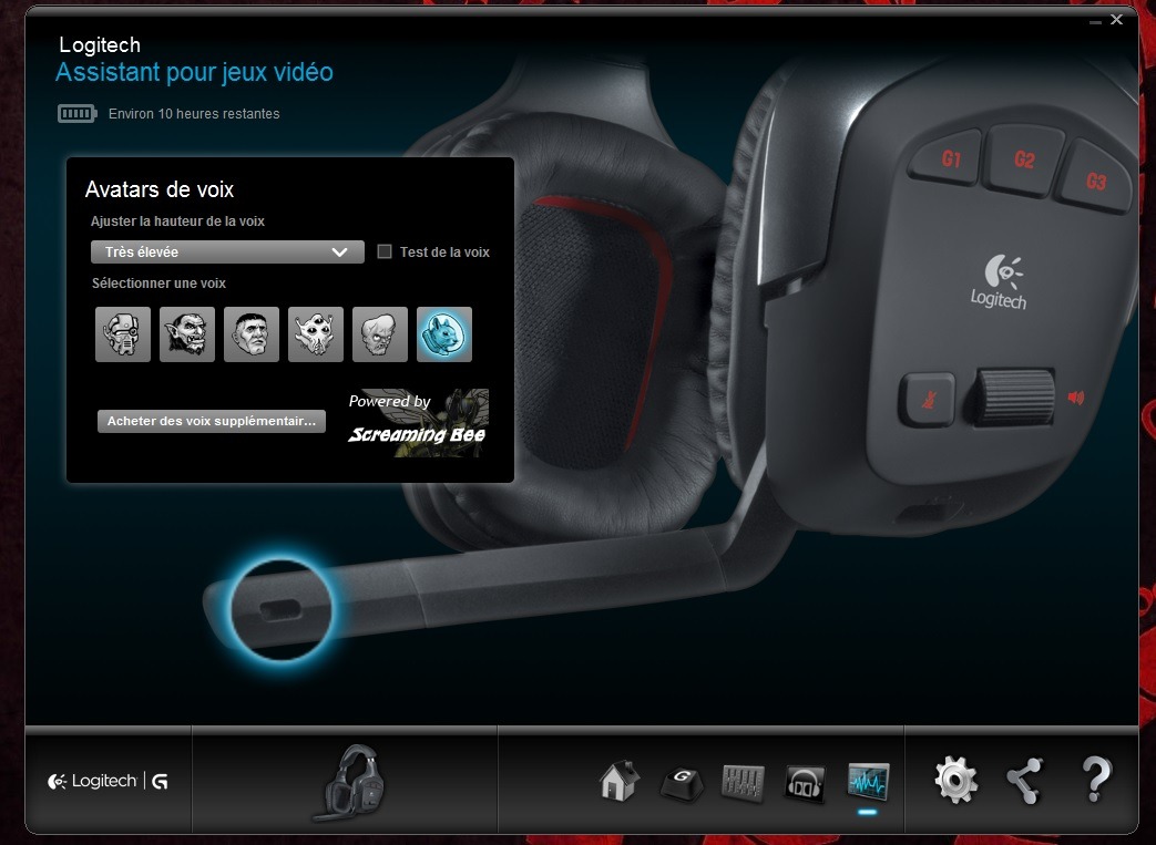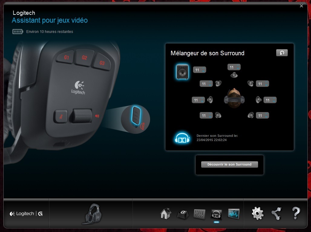 Concernant le son, il est plutôt bon sans être excellent. Enfin je dis ça mais en trifouillant un peu les options sonore dans le logiciel de Logitech, je suis arrivé à obtenir un son clair, précis et dynamique lors des phases d’actions. Les basses ne sont pas très présente et j’en suis satisfait n’étant pas un adepte des basses sureprésentées. Quoiqu’il en soit vous pourrez ajuster le son à votre convenance en utilisant l’assistant de configuration de Logitech.