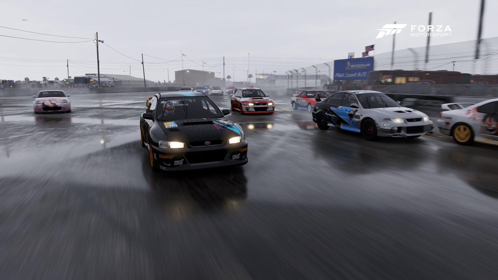 Par exemple la piste en version pluie a droit à ses flaques d’eau, sa visibilité amoindrie et ses aquaplanning incontrolables. Réfléchissez à deux fois avant de passer votre roue dans cette flaque ou d’aller tutoyer un bumper d’un peu trop près : la glissade ou le tête à queue n’est jamais loin. De la même manière, la nuit et ses lumières artificieles sont un régal pour la rétine moins pour notre pilotage qui devra réapprendre chaque courbe, chaque sortie de virage et chaque zone de frainage. Chose amusante, en tatant un peu trop de la carroserie de son concurent, on peut aisémenent bousiller ses phares. Cela a un impact direct sur la visibilité que l’on a sur le reste du tracé.