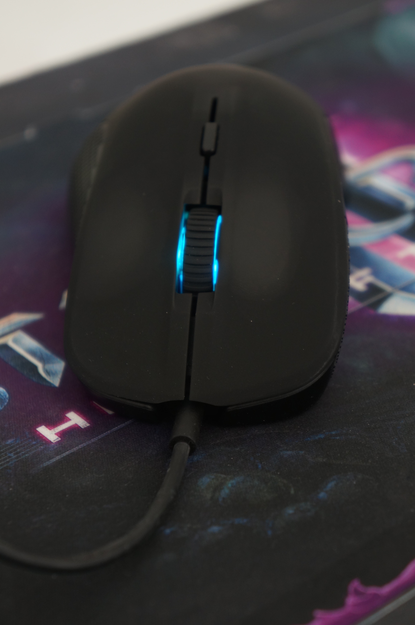 Coté design, la Steelseries Rival arbore une robe noire qui se distingue par une surface à grip sur les cotés pour assurer une bonne prise en main et une surface soft touch sur le dessus pour un toucher plus agréable. Elle va à l’essentiel en ne proposant pas de nombreux boutons programmable. Les deux clics principaux, une molette, deux boutons sur le coté gauche (au niveau du pouce) et un bouton sur le dessus de la souris. Les boutons propose un clic court et silencieux, ce que je trouve plutôt agréable en jeux et qui évitera de saoulé votre entourage environnant. La molette est à cran. Il n’est pas possible de la rendre en roue libre comme une G500 de Logitech par exemple. elle ne permet pas non plus de faire des clics latéraux. Dommage car cela aurait permis deux actions supplémentaires sans surcharger la forme de la souris. Le bouton sur le dessus, permet, comme on le verra plus tard, de changer le profils de la souris à la volée. Enfin pour terminer, le fil n’est pas tressé, il est en caoutchouc.