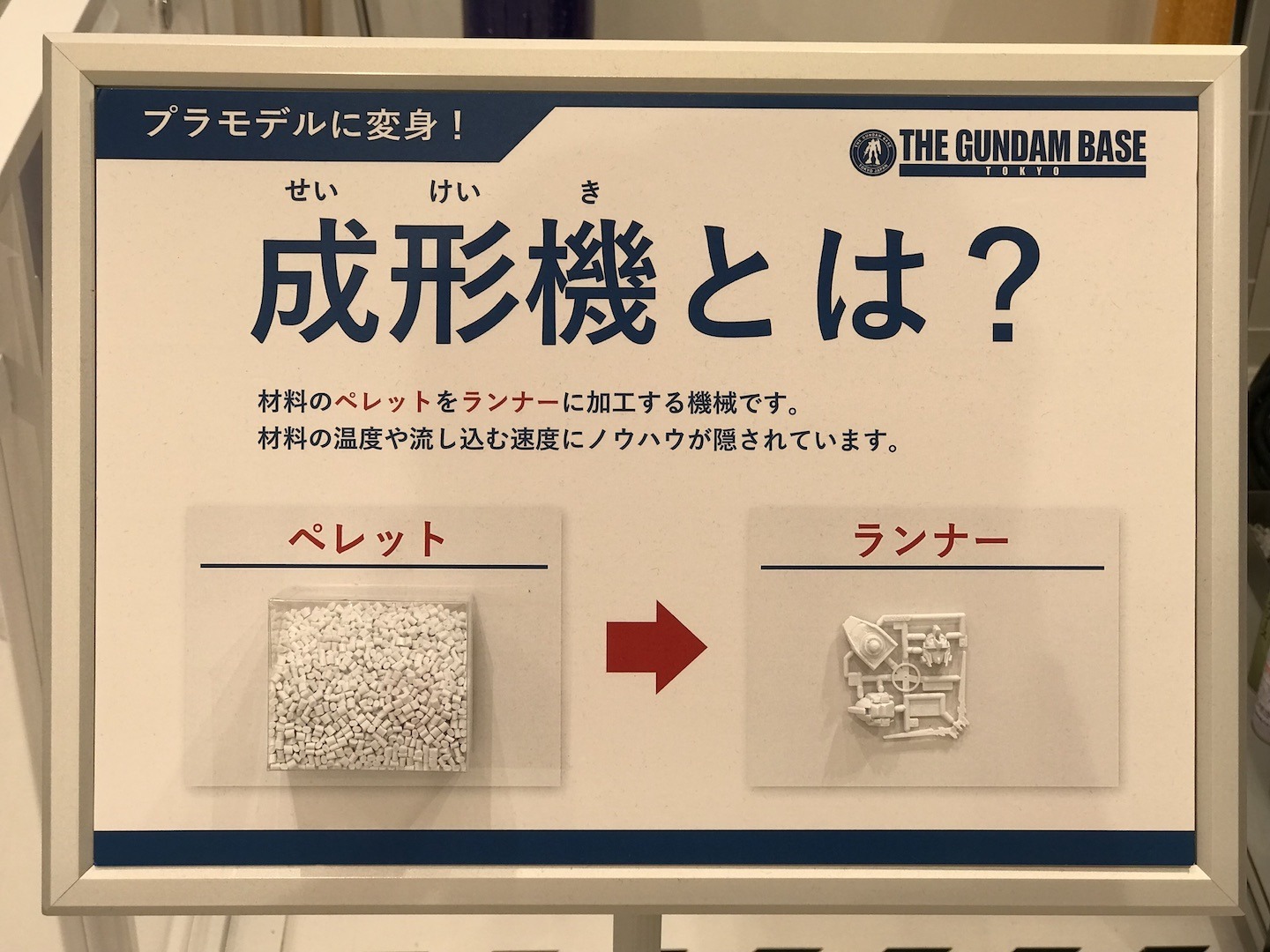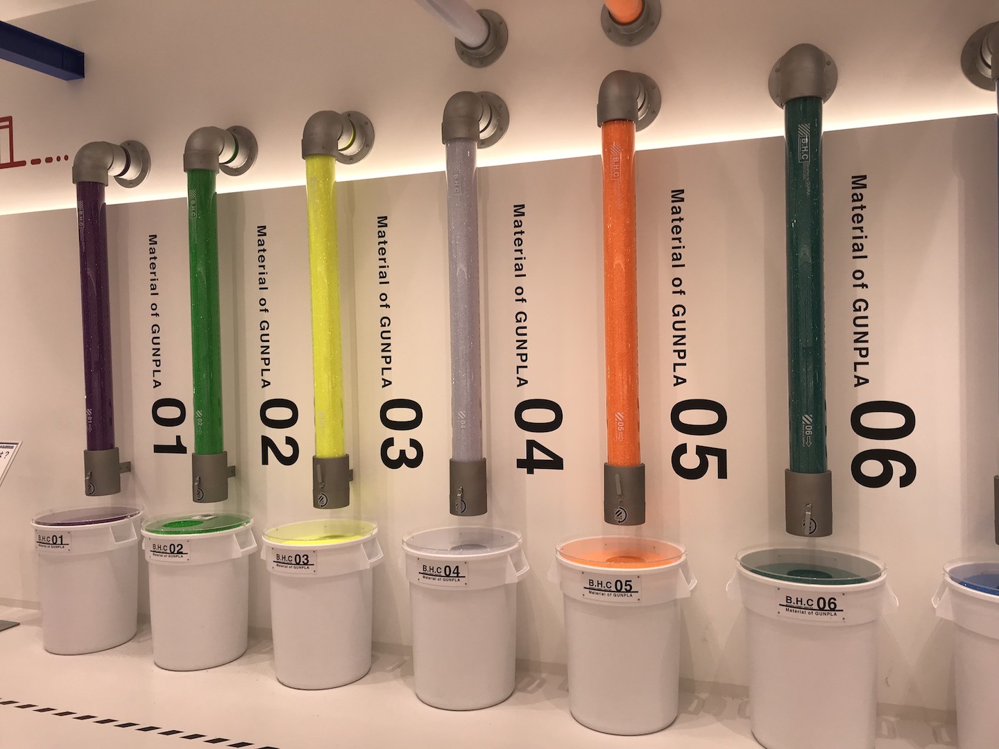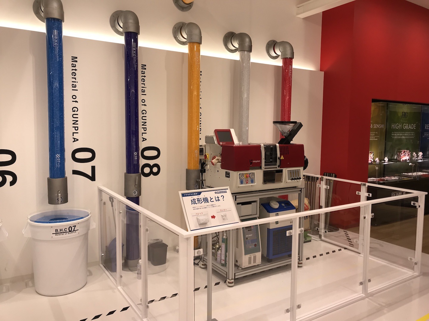 Cet espace, le plus intéressant à mon goût, nous en apprend plus sur la fabrication des pièces qui composent les maquettes Gunpla. On y retrouve une maquette d’une usine ainsi que plusieurs ateliers présentant la fabrication des millions de pièces composant les maquettes. Comment quelques granules qui suivent un long process de transformations se transforment en pièces à assembler. Celles-ci donnant vie à des robots toujours plus réalistes.