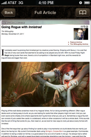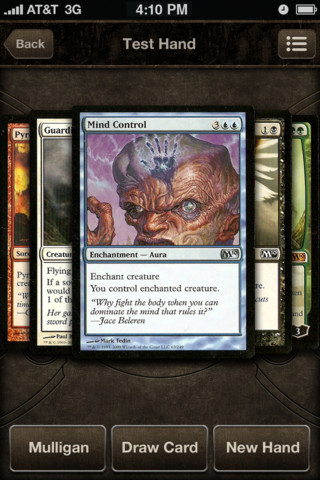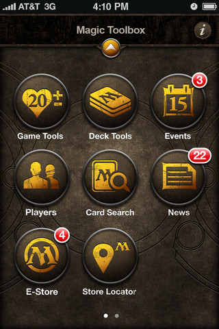 Voici les premières images de l’application Magic Toolbox pour smartphone. Elle devrait être bientôt disponible pour iPhone et Android. Même s’il existe déjà quelques applications, celles-ci ne sont le plus souvent ni de qualités, ni complètes voir assez chères. L’application officielle devrait répondre à toutes ces exigences et deviendra surement la meilleur amie du joueur Magic. On pourra ainsi avoir les toutes dernières informations de l’univers Magic The Gathering, l’utiliser pour tester ses decks ou encore l’utiliser lors de nos parties pour compter les points de vie entre autre. Bref, un couteau suisse indispensable. Vivement sa sortie !