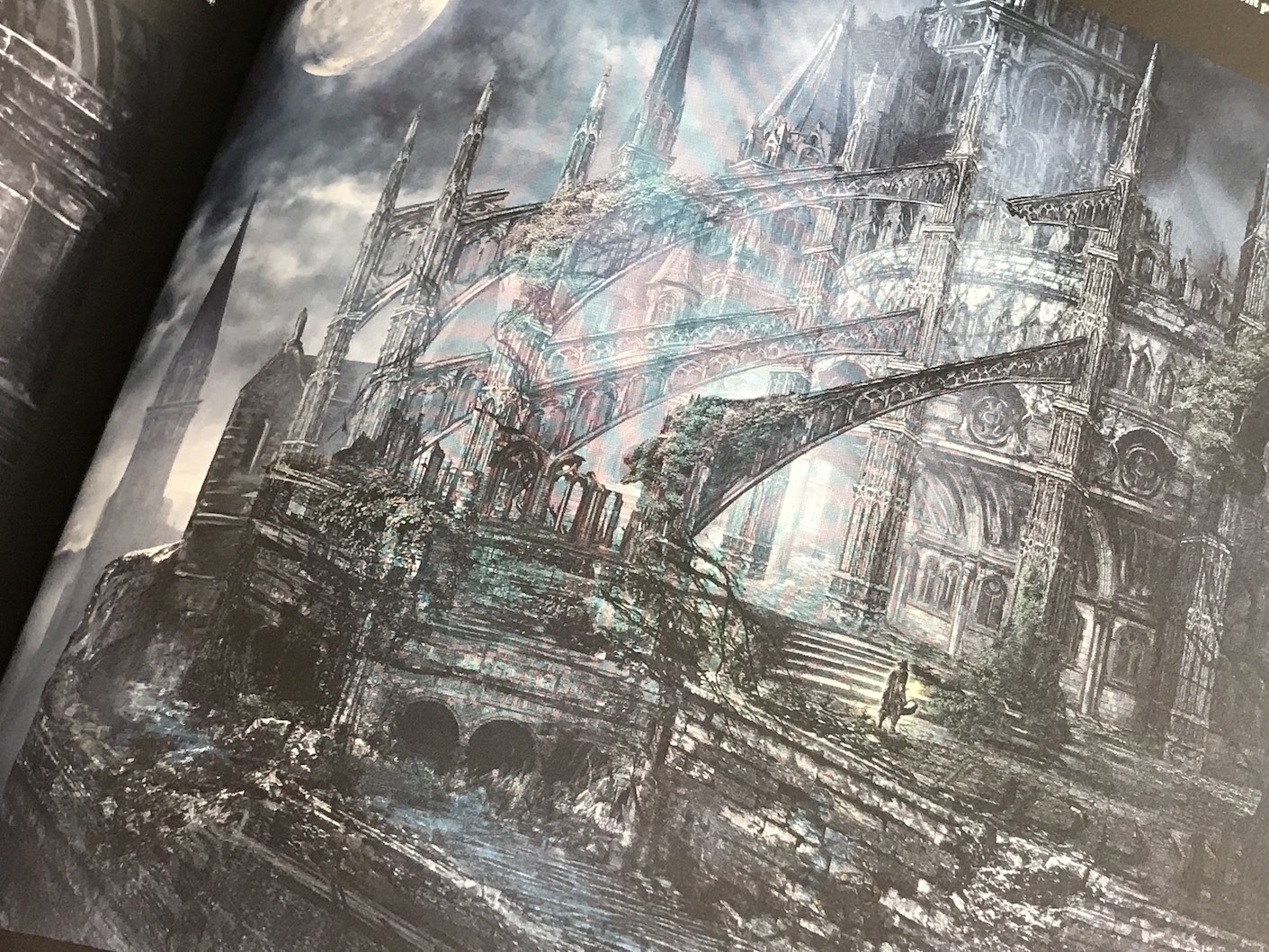Ce recueil recense plus de sept cents travaux préparatoires qui vont des personnages aux environnements en passant par toutes les monstruosités que l’on peut rencontrer dans la ville de Yharnam. Celles-ci sont réparties sur deux cents cinquante pages. La couverture rigide est très classe et fait penser à un vieux grimoire renfermant une histoire interdite. Les pages, en papier glacé, proposent des impressions de très bonne qualité. Mention spéciale aux pages pleines où l’on a l’impression d’être aspiré par le cauchemar du chasseur. Les illustrations des nombreux boss de Bloodborne sont également folles. on a la possibilité de distinguer de nombreux détails passés inaperçus durant les affrontements in-game.