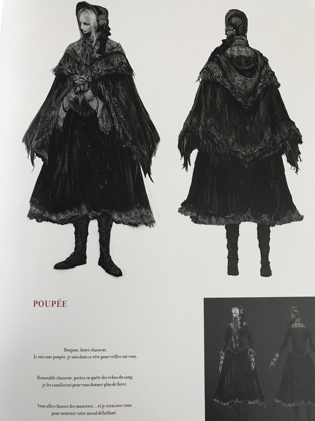 Cette édition est bien entendue traduite en français, c’est là son principal avantage versus une édition US sortie il y a plus d’un an. Les différentes annotations des croquis, dessins et autres nous donnent parfois quelques citations qui prolongent l’immersion même si la plupart du temps cela se résume à un titre uniquement. A noter qu’il comprend tous les éléments du DLC Bloodborne: The Old Hunters.