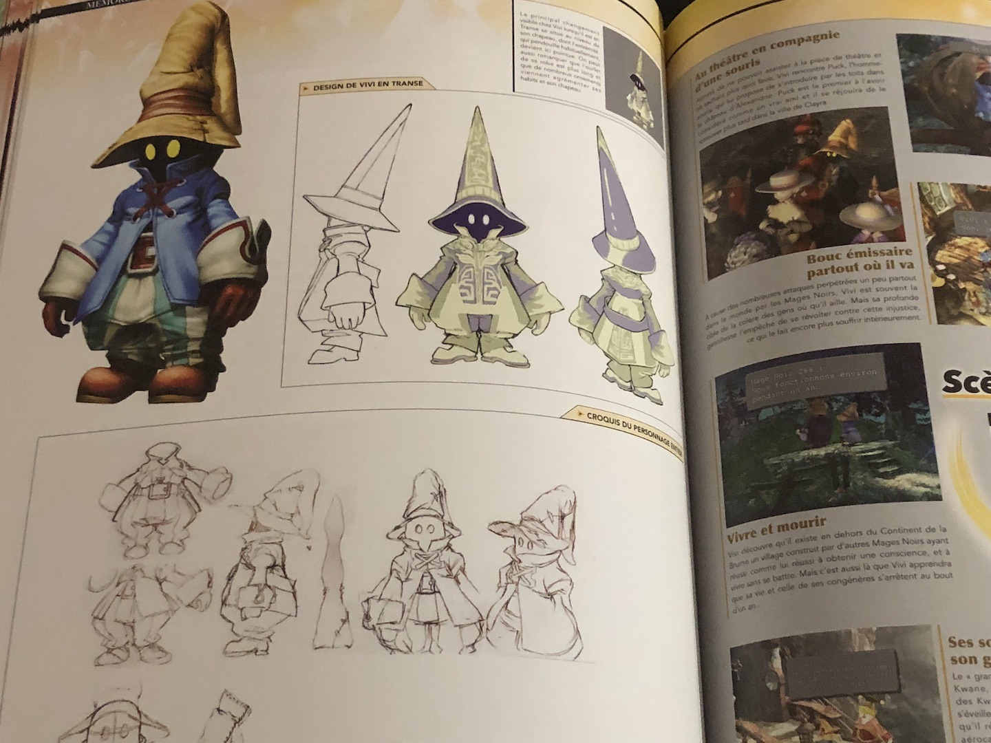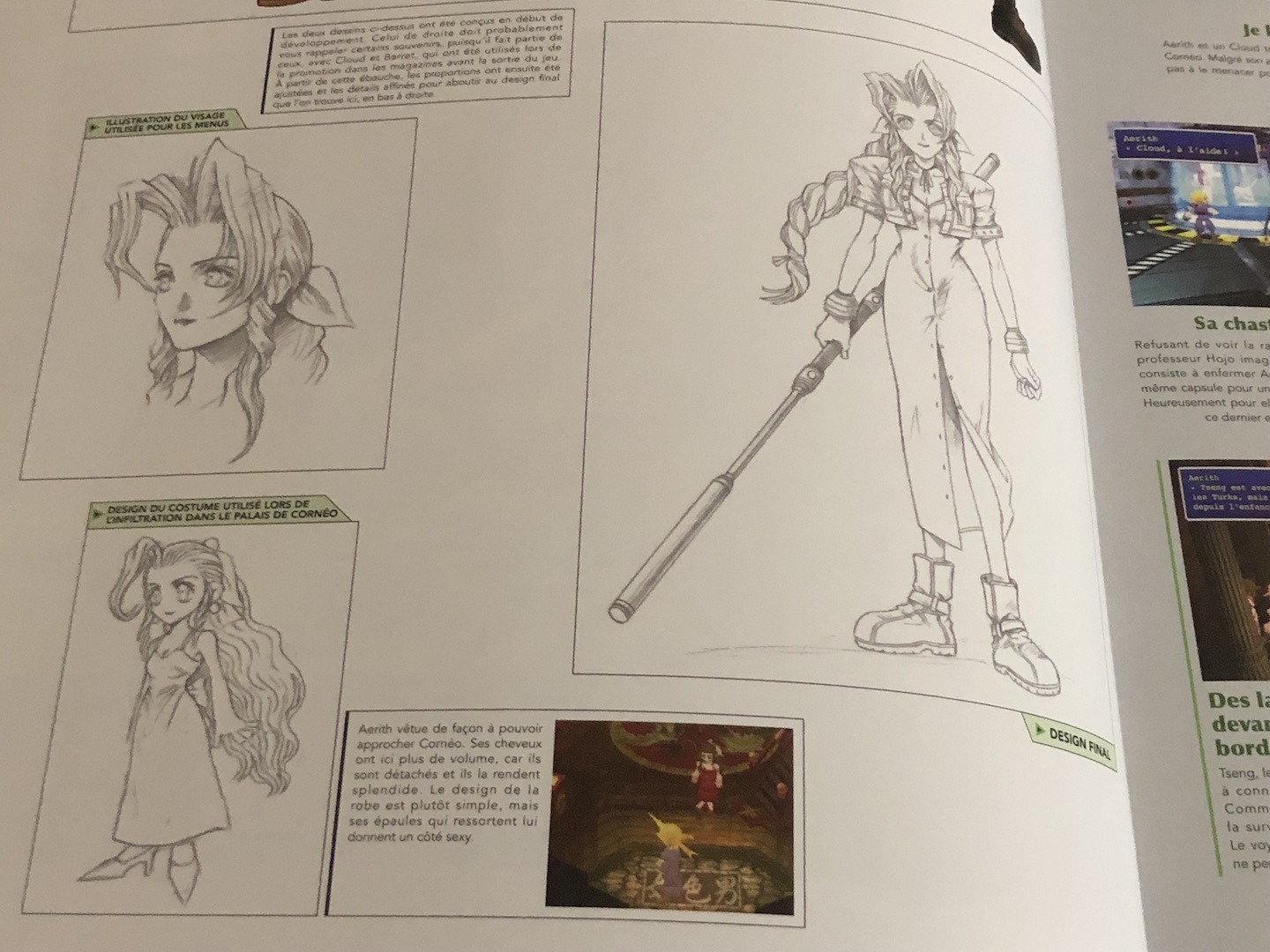L’artbook se décompose naturellement en trois parties consacrées chacune à un épisodes. Les personnages, l’univers et les monstres y sont disséqués à base de croquis, d’artwork, de screenshots et de tirades issus des meilleurs moments de chaque jeux. L’artbook brille aussi dans la forme avec un joli papier glacé, un grand format et une couverture, très agréable au toucher en passant, arborant de jolis logos pour chacun des Final Fantasy qu’il présente.