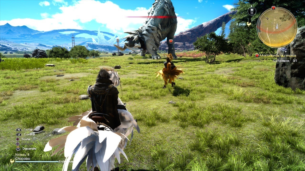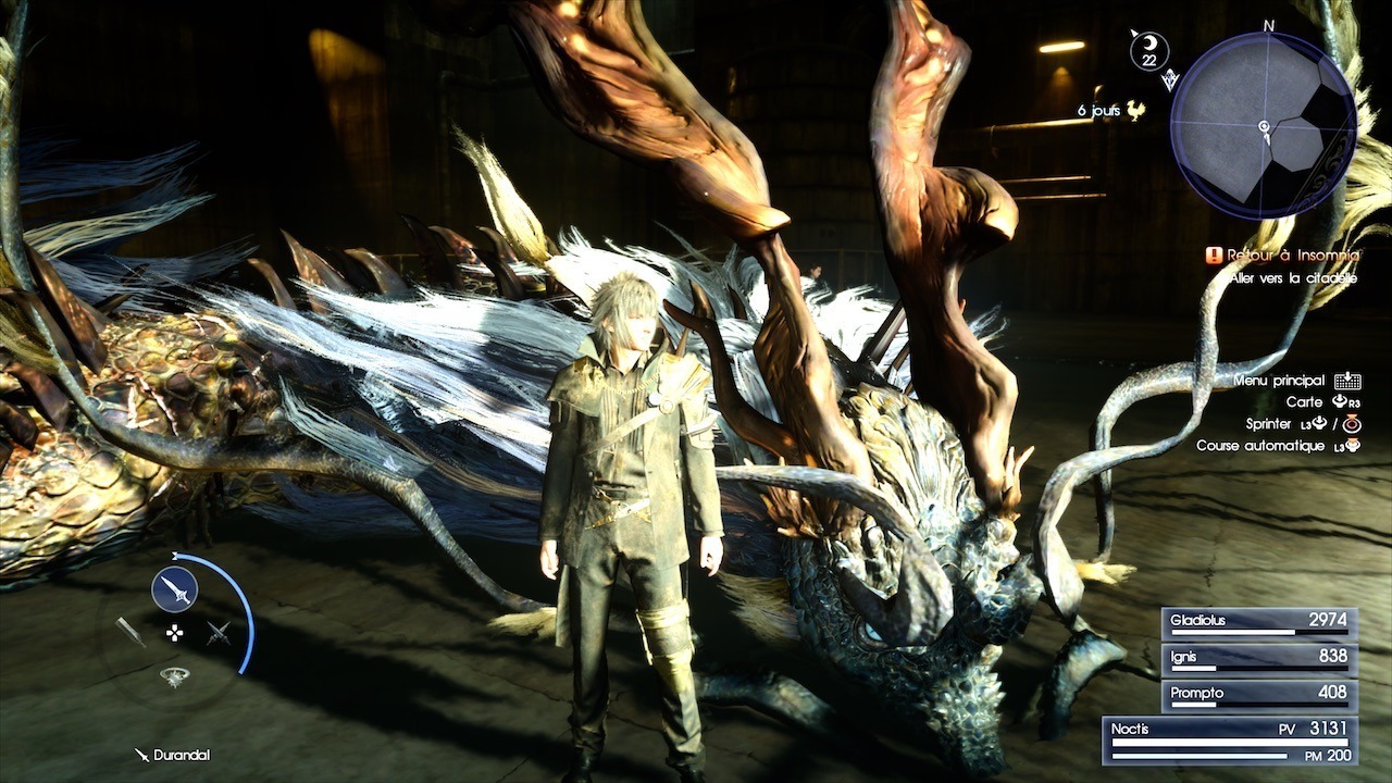 Certes le contenu de l’histoire principale est court par rapport à la licence (15h/20h) mais il y a du contenu supplémentaire qui vous tiendra au moins le double en terme d’heure (collecter les 13 armes du Lucis, obtenir les armes légendaires, explorer les dédales, capturer les deux poissons légendaires dans des parties de pèche très sympa et surtout mener à bien la centaine de chasses disponibles). Bon Ok, je zappe quand même les quêtes remplissages où il s’agit de dépanner des random guys sur le bord de la route ou les quêtes types « Peux tu me ramener des flageolets ? » VERIDIQUE.