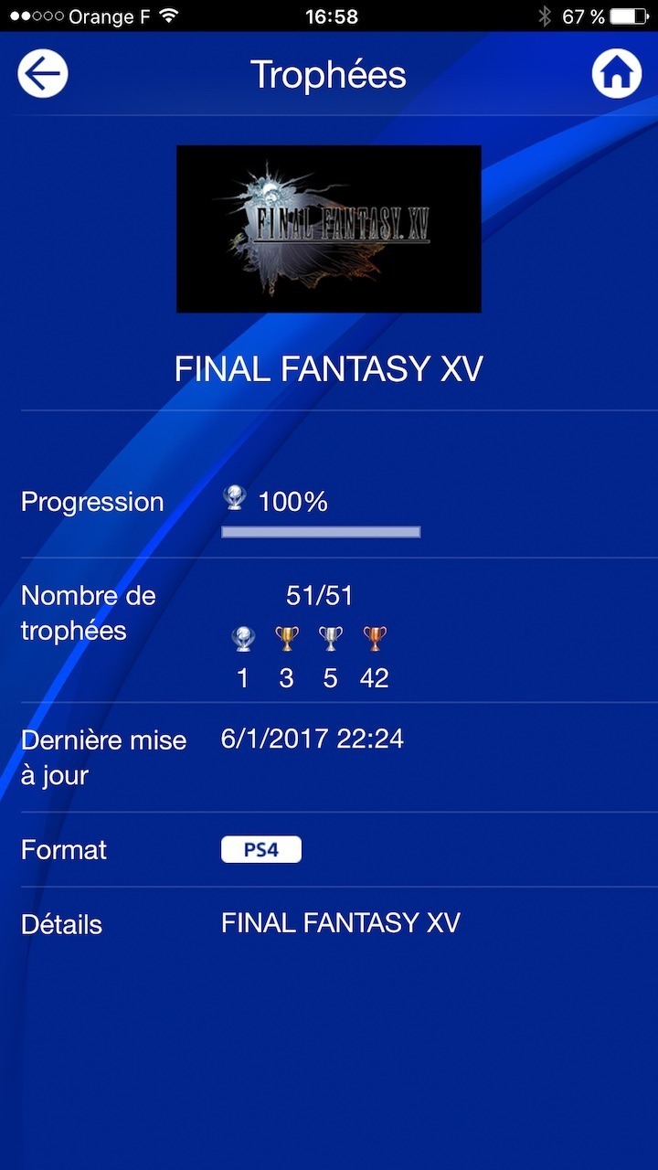 Que dire de Final Fantasy XV… Beaucoup d’encre a coulé sur les Internet. J’ai également pas mal partagé mon avis sur le blog et sur Twitter notamment. Mon expérience se résume dans les différents Screenshots ci-dessous. Un Platine que j’ai obtenu avec plaisir, un OST fantastique que j’ai acheté (un bail que je n’avais acheté de « musique ») et des screenshots en pagaille.