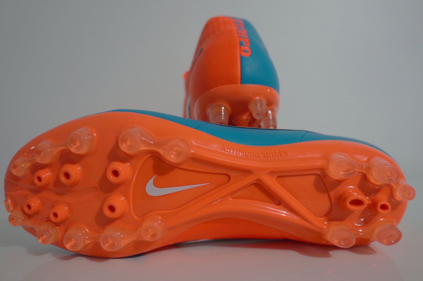 Bref revenons à ma paire de Nike Tiempo Legacy. Je vous passe les détails techniques, que vous pourrez retrouver sur le site de Nike, pour me focaliser sur mon ressenti. Et bien, j’ai été tout simplement subjugué par ces crampons. Ils sont ultra confortables. Le cuir de veau très souple assure un toucher de balle excellent. Concernant l’amorti, les reprises de course ou les changements de direction, là aussi c’est toujours impecable. Après un échauffement et un match complet de 2x 30 mn, je n’ai pas senti d’échauffement ni d’humidité dans les chaussures. Concernant la pointure, sachez que les Nike Tiempo Legacy taillent petit. J’ai pris une pointure et demie en plus que sur mes Adidas Kaiser (43 -> 44,5). Etant sensible des abducteurs sur les pelouses synthétiques (au point d’avoir dût changer de type de crampons plusieurs fois), je n’ai senti aucune douleurs après mes matchs. Ce qui me manque finalement sur cette paire, c’est la languette qui se rabat sur le dessus du lacet.