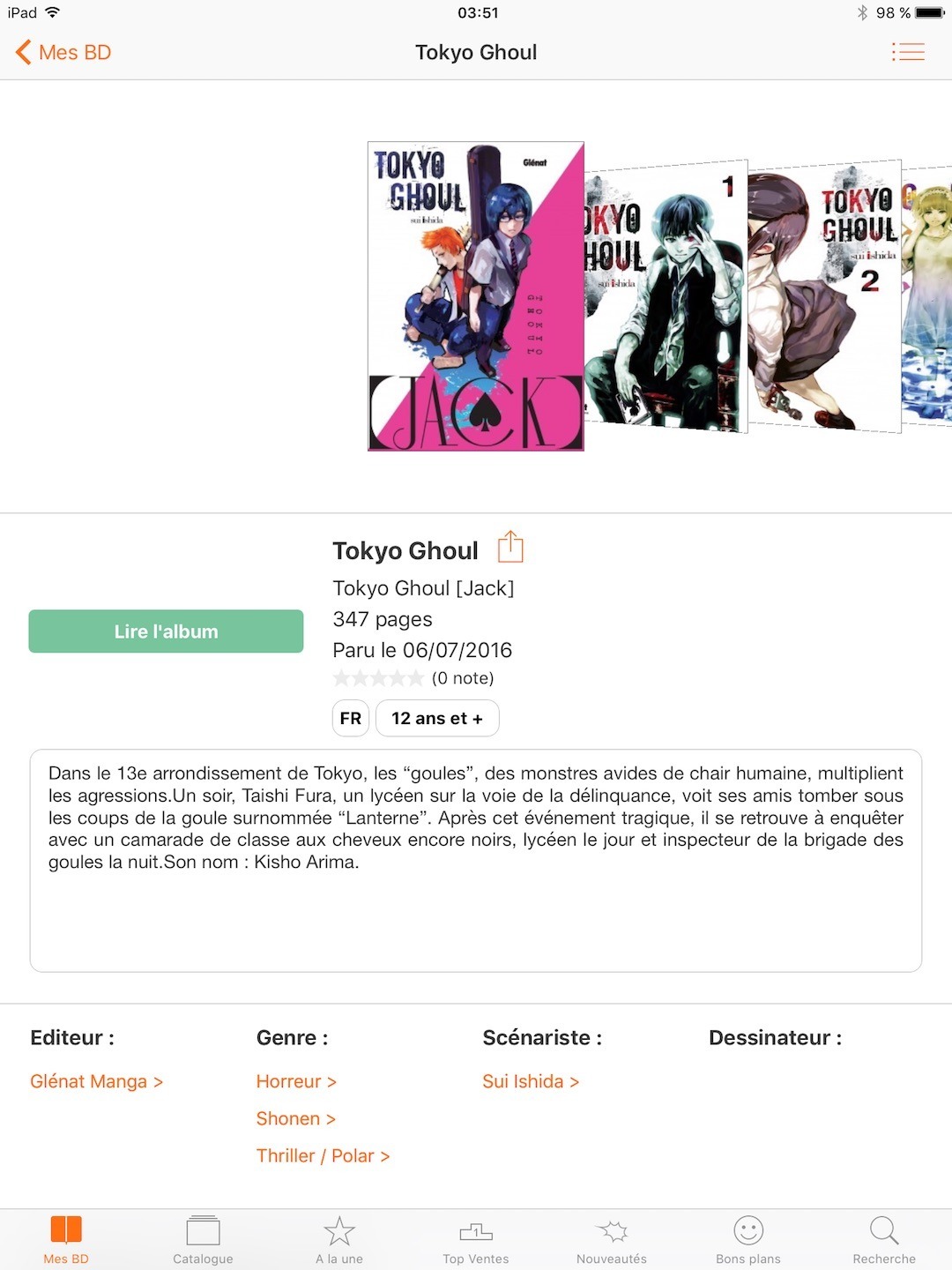 Au niveau du catalogue, c’est plutôt très bien fourni côté manga avec de vieilles séries (Dragon ball, Captain Tsubasa…), des séries qui viennent de se finir (Naruto, Bleach…) et de nouvelles séries comme Platinum End ou Rikudo . Je m’y connais moins en comics mais l’offre semble pléthorique avec du Star Wars, du Walking Dead et du Marvel par exemple (DC Comics est absent du catalogue). Enfin coté BDs, on retrouve les classiques Lucky Luke, Gaston et plein d’autres choses typées SF, Historique, fantasy…. Le mieux reste d’aller voir le catalogue pour vous faire une idée. N’hésitez pas à créer un compte, car une fois cela fait, vous pourrez obtenir un bouquin de votre choix gratuitement et du coup tester le service.