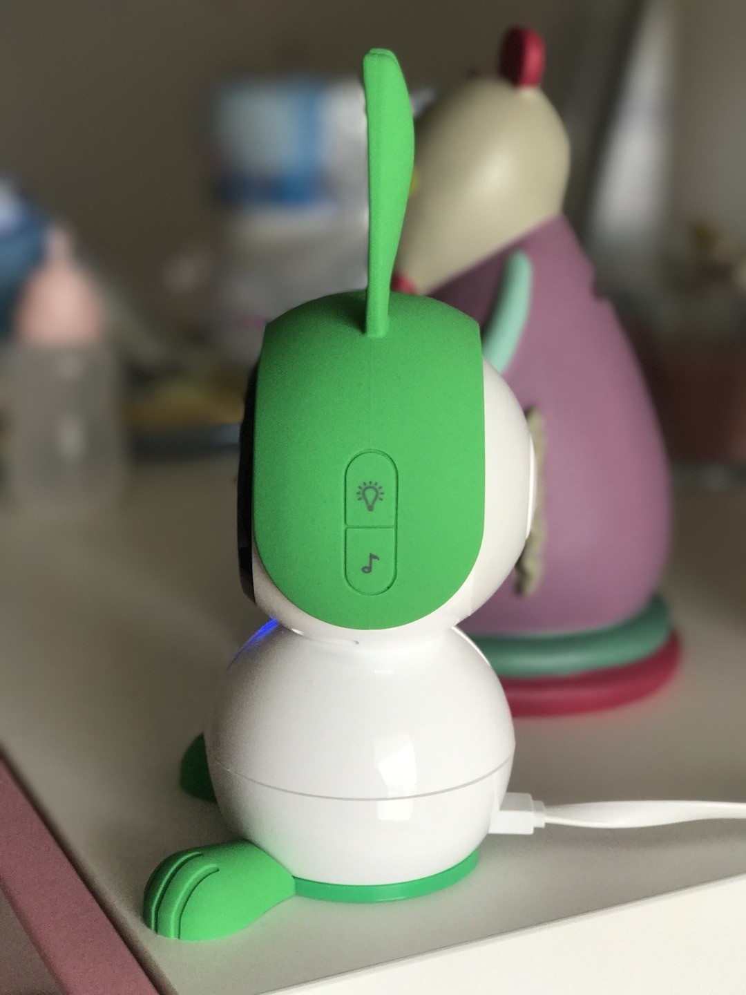 Au niveau de son look, on retrouve une coque de lapin bien rigolote qui permet à ce babyphone de se fondre dans le décor sans faire peur à l’enfant. Et si la version lapin ne vous plait pas, il existe également des modèles chat et dalmatien à acheter séparément ! Sa tête est pivotante et peut donc s’ajuster afin de couvrir la scène que l’on veut surveiller. Elle ne nécessite que d’être branché au courant. Côté connectivité, elle utilise le réseau WIFI de l’appartement après avoir été connecté via une configuration très simple depuis l’application mobile Arlo.