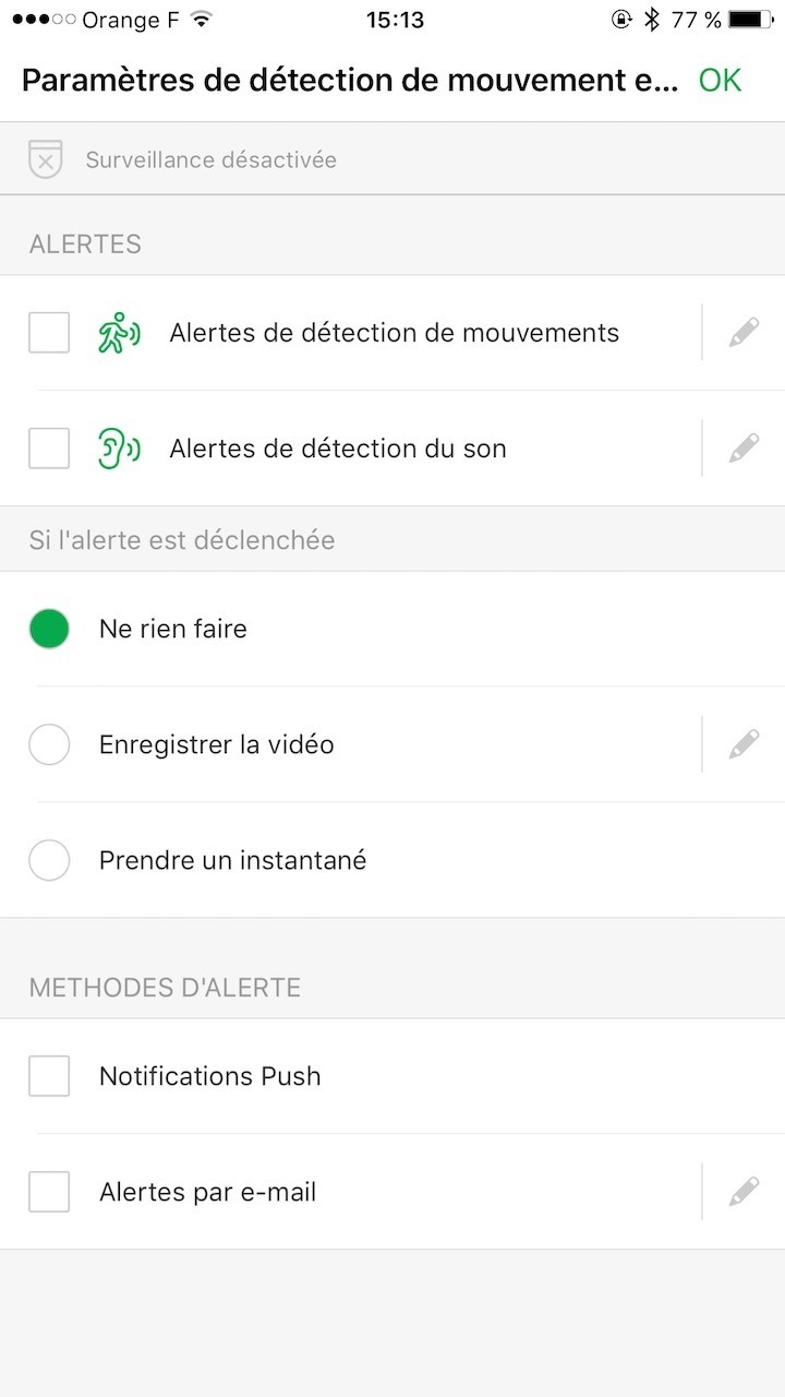 L’autre truc cool avec cette caméra, c’est qu’elle est bourrée de capteurs. On a ainsi accès à la température de la pièce, la qualité de l’air et au taux d’humidité de la pièce où il se trouve. Il est également doté d’un détecteur de mouvements et d’un détecteur sonore. Ainsi en ajustant les notifications comme on le souhaite, on peut en recevoir au moindre mouvement ou bruit détectés.