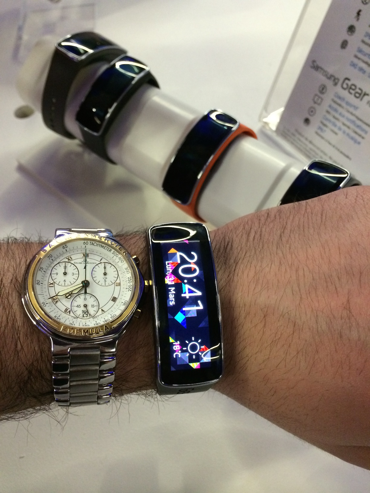 Disposant d’un écran OLED incurvé, la Galaxy Gear fit tient impeccablement au poignet. Son écran est vraiment magnifique bien que sujet aux reflets. A voir ce que cela donne au soleil en pleine journée.