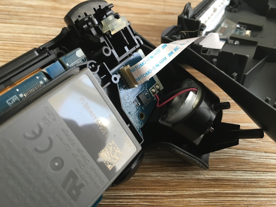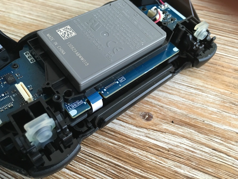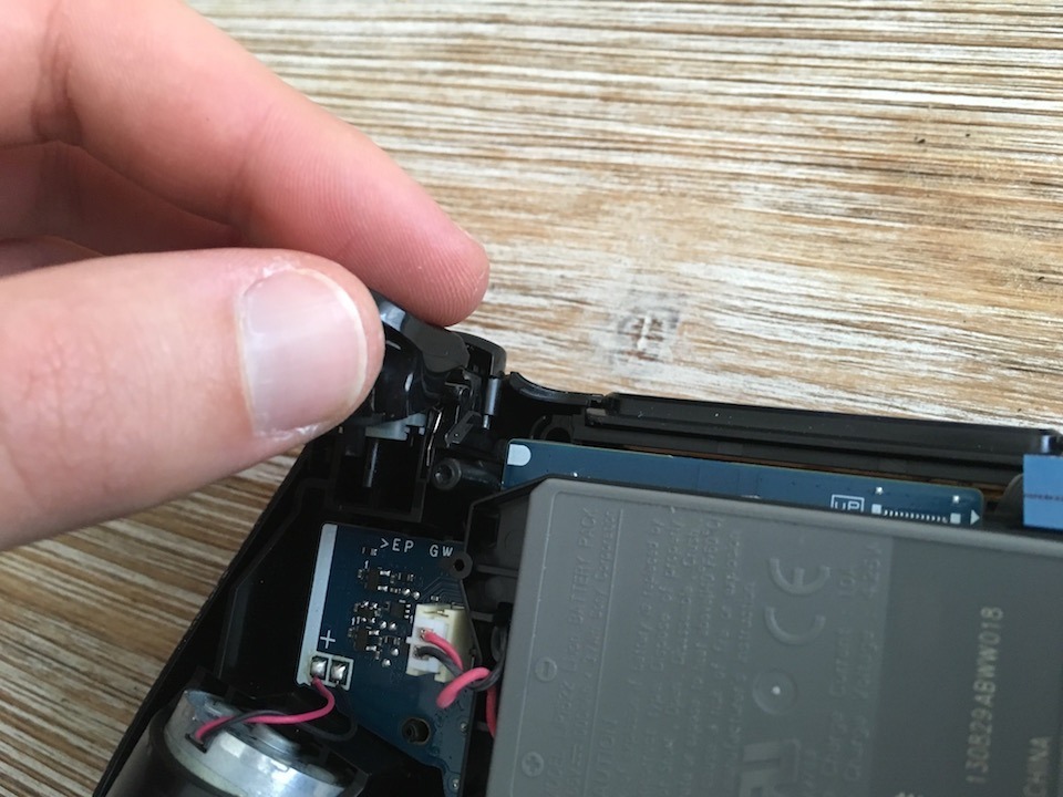 Une fois que c’est fait, retourner délicatement la carte électronique sur elle-même tout en dégageant les sticks de la coque inférieure. Puis il suffit de retirer les sticks endommagés en tirant dessus. Ça vient tout seul. Enfoncez les nouveaux sticks à fond et vérifiez bien leur mobilité en bougeant dans toutes les directions.