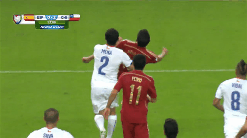 D’un côté la vieille roja qui joue comme s’ils menaient 3 – 0, de l’autre la jeune roja blindée de piles électriques : Vidal, Vargas & Alexis Faudel Sanchez …