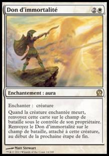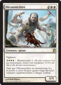 Tandis qu’en rouge, j’avais une myriade de créatures bien chiantes sans toutefois être capable de faire basculer une partie. C’est donc de bon sens que je suis partie sur un blanc Bleu. A la première ronde, je me prends une défaite sévère sans avoir pu faire quoi que ce soit. Je n’ai pas vu le jour et je me dis que finalement avoir joué bleu est peut être une mauvaise idée. C’est ce que la deuxième ronde me confirmera. Je la gagne mais même avec Thassa en jeu, mon jeu est lent et faible et je dois ma victoire uniquement à un Hécatonchire monstrueux + don d’immortalité qui gérait, et l’attaque et la défense !