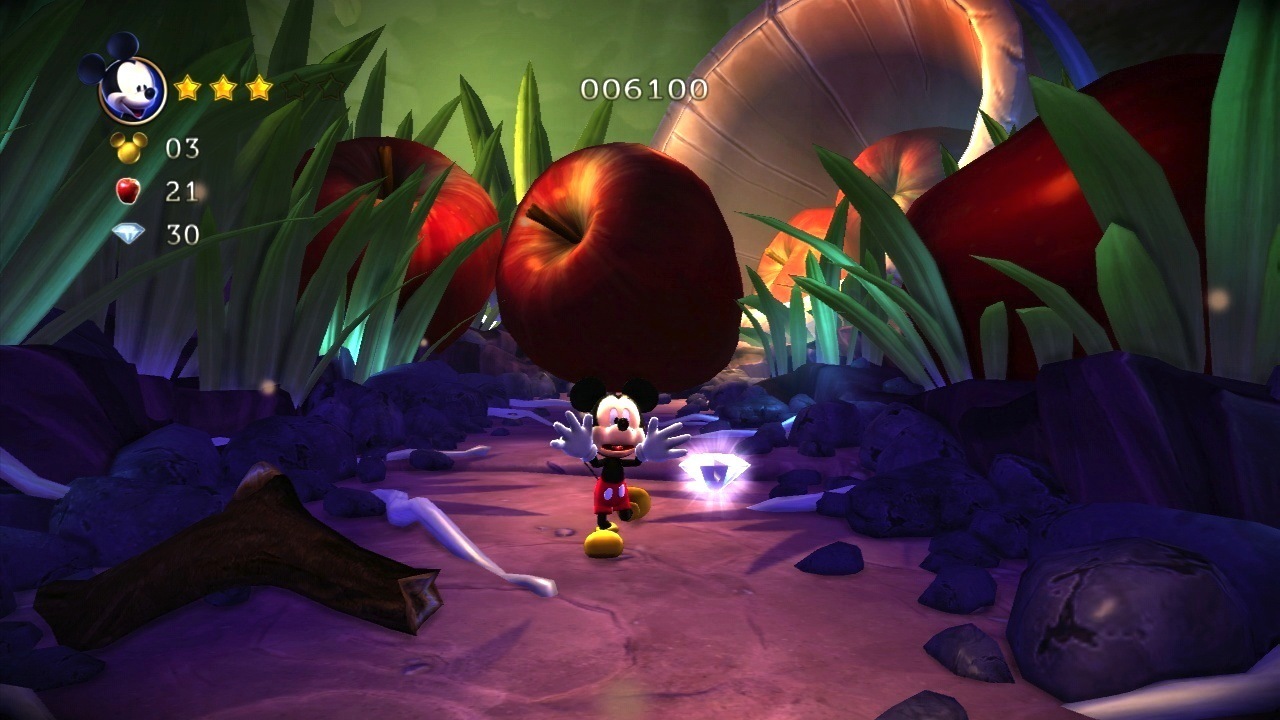 Castle of Illusion starring Mickey Mouse se positionne comme un remake du titre éponyme sorti en 1990 sur Megadrive. Il s’agit d’un jeu de plateforme dont le gameplay très classique (courir, sauter, lancer des projectiles) est magnifié par une ambiance féérique dont seul Disney a le secret.