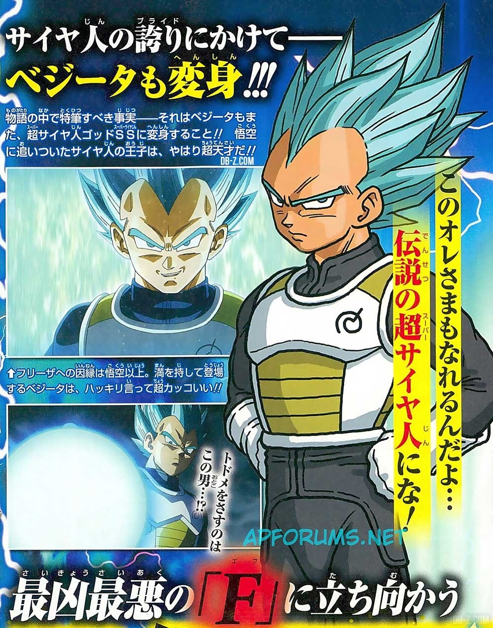 J’avais tenté de résister à tous les spoils du nouveau film d’animation de Dragon Ball Z Fukkatsu no F. Mais c’était peine perdu tant les infos ont filtré un peu partout. Du coup, je suis au courant pour les nouvelles transformations de San Goku et Vegeta. Nos deux compères vont atteindre le rang de Super Saiyan God Super Saiyan. Voici en image la nouvelle allure de nos deux héros dans le film Dragon Ball Z Fukkatsu no F / Dragon Ball Z La résurrection de Freeze en Français.