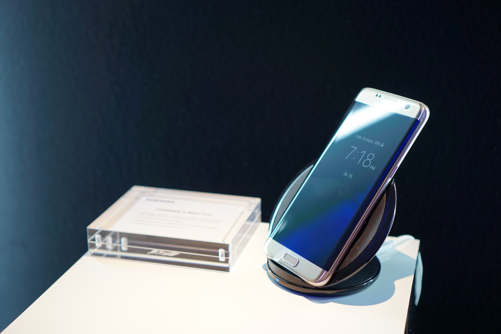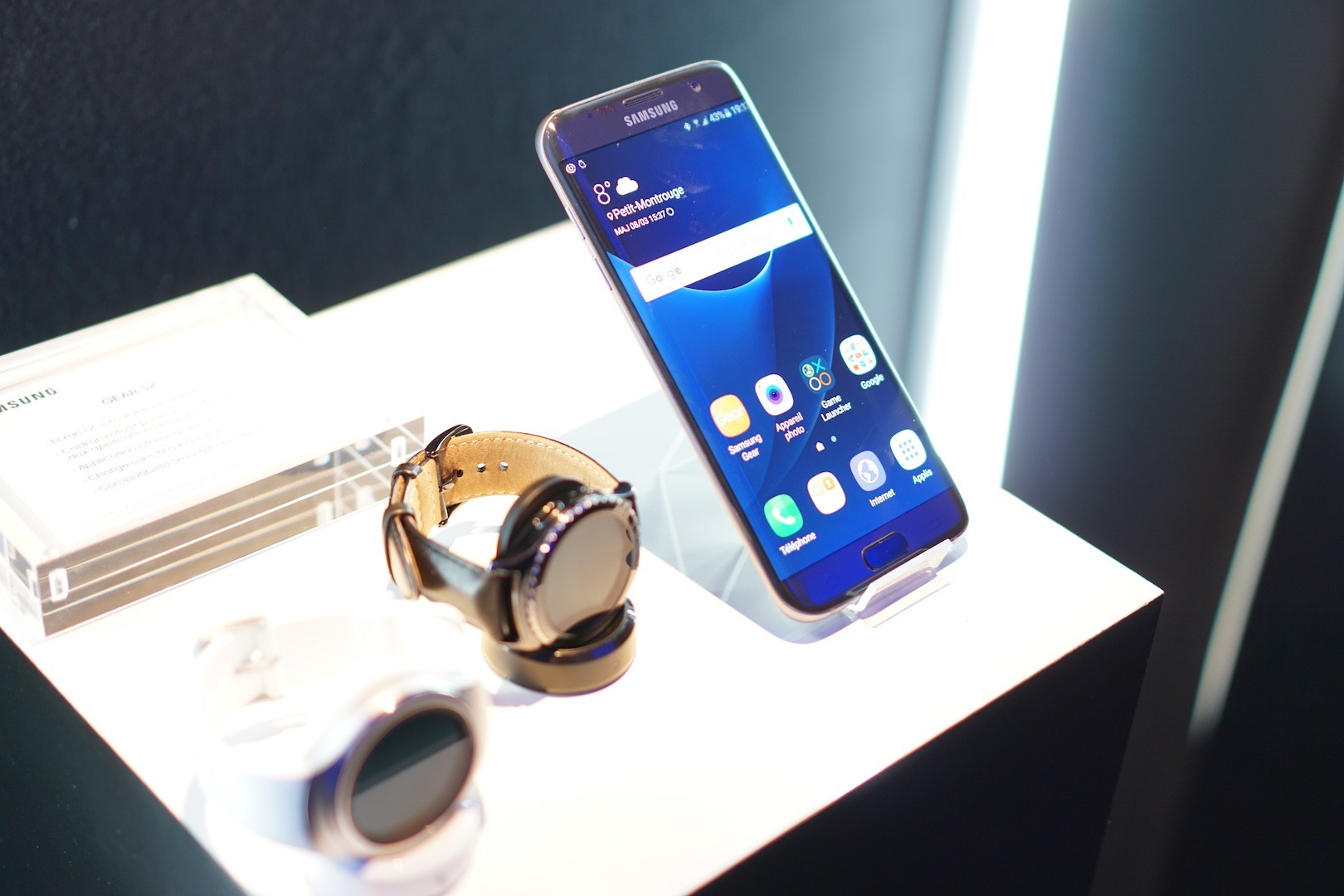 Des petits ateliers nous ont permis de découvrir les points forts du terminal notamment la prise de photo en mouvement ou en environnement sombre. Sur ce dernier point j’ai pu comparé avec mon iPhone 6S et mon Galaxy S6 Edge. Le constat est sans équivoque. Le Galaxy S7 Edge enterre les deux autres mobiles sans discussion possible. Je vous ferais des photos tests quand je l’aurais récupéré. A noter également que le rendu des couleurs du capteur photo est bien plus fidèle que sur le S6 Edge. La partie logiciel sera à tester plus au calme mais pour le moment le S7 edge a plus que titillé ma curiosité. Son design plus que réussi m’a clairement donné envie d’en posséder un !