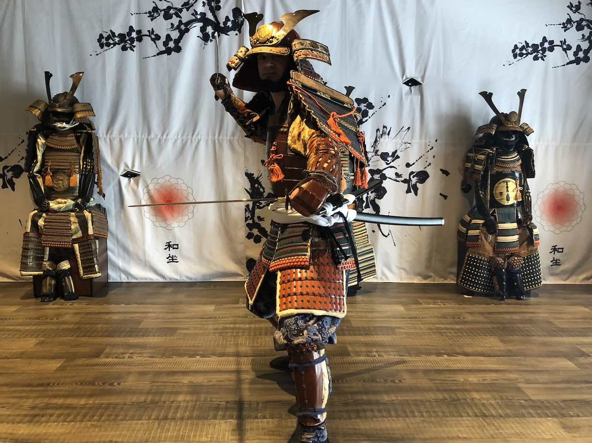 Le jour J, je me rendais alors au point de rendez-vous. Perdue au milieu de petits immeubles, une devanture sortait du lot, c’était là. Les dix premières minutes furent allouées à un petit cours d’histoire sur les Samouraï et notamment leurs armures. Saviez-vous qu’elles étaient la plupart du temps rouges et/ou noires pour masquer les plaies et le sang qui pouvaient couler ? Qu’elles pèsent entre 15 et 20 Kg ? Que sous ces armures, les samouraïs portaient un Kimono ? Voici quelques informations parmi d’autres que j’ai pu apprendre avant de passer à la deuxième étape…