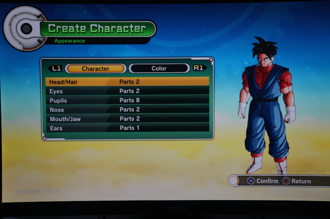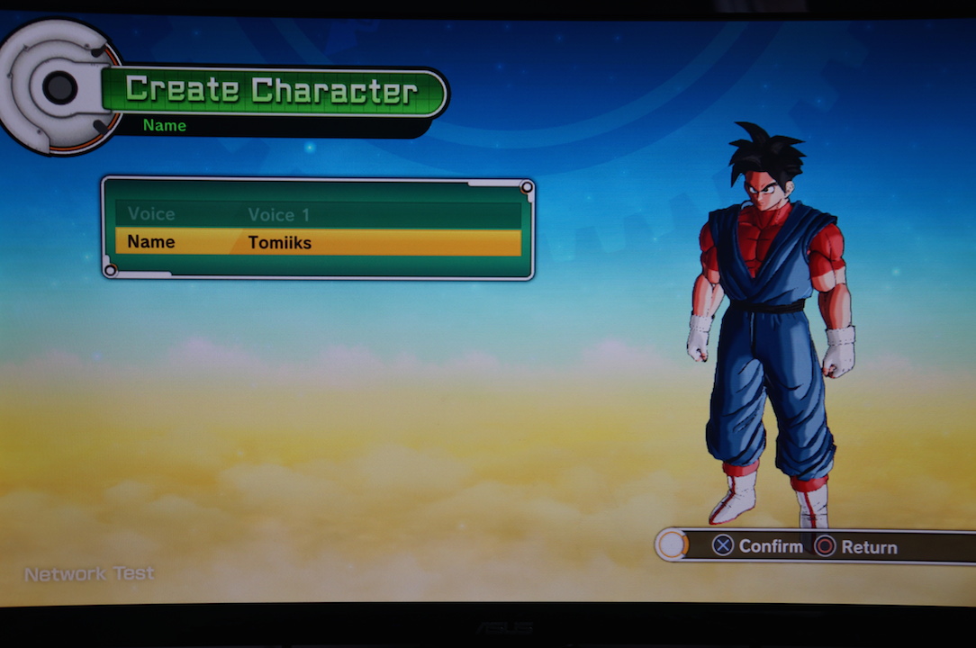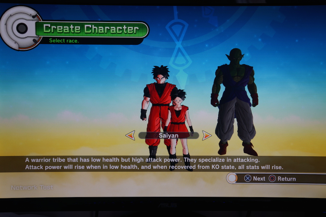 Deux races étaient disponibles. Les Saiyan et les Namek. Dans les deux cas, on pouvait choisir un personnage masculin ou féminin. Cependant, je ne pouvais pas choisir la silhouette du guerrier (taille, poids, physique). J’ai opté pour du classique, un saiyan mâle. Dans la version définitive, il y aura d’autres races et l’on aura plus de choix sur la silhouette de notre personnage.