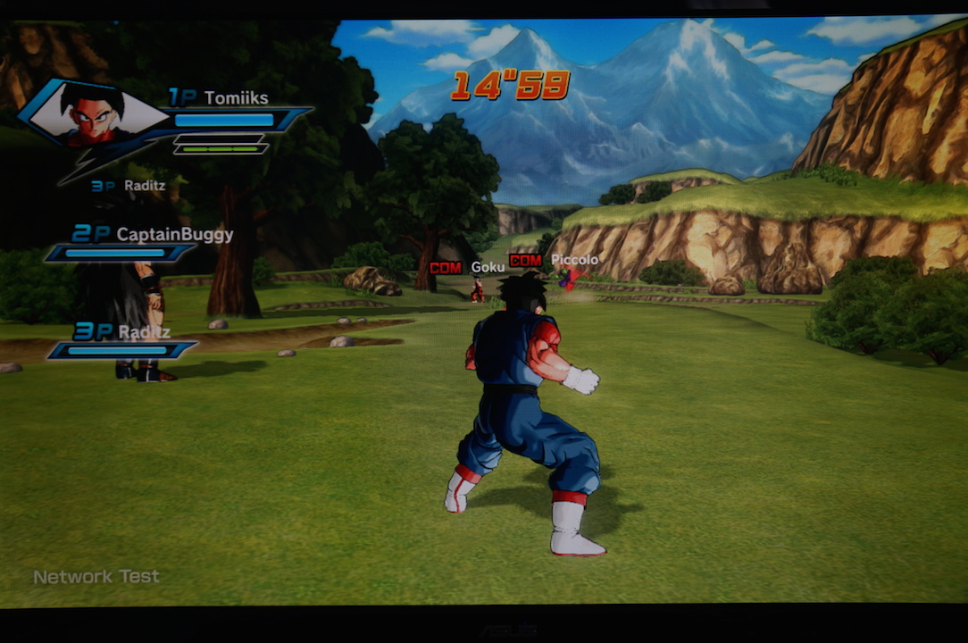 Le combat démarre, Raditz (CPU), un autre joueur et moi face à Goku (CPU) et Piccolo (CPU).