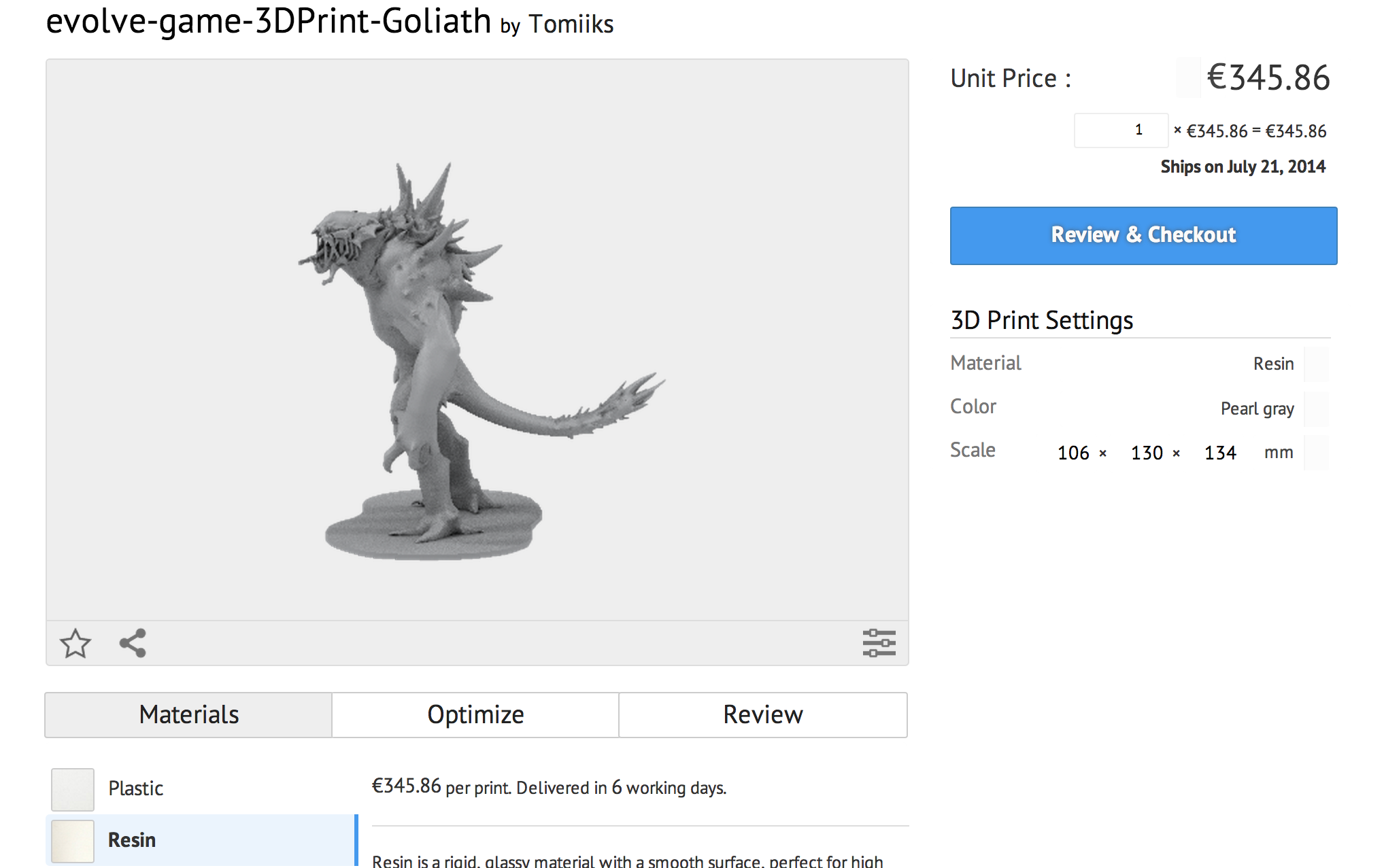Du coup, j’ai testé sur le site de Sculpteo (des Français Cocorico) et voilà ce que ça donne pour le Goliath.