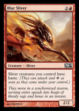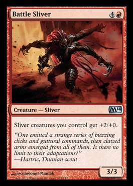 Les premières cartes ont été dévoilées et vous pouvez les voir ci-dessous. Les slivoïdes sont de retour mais avec un nouveau design qui rappelle les Zergs ou les Predator. Qu’on aime ou qu’on aime pas, il faudra s’y faire ! L’édtion Magic 2014 est l’édition de base qui sort chaque année avec des cartes plus simples pour appréhender Magic pour un joueur novice. En effet, elle est composée de nouvelles cartes mais aussi de cartes qui ont fait les grandes heures de Magic par le passé.