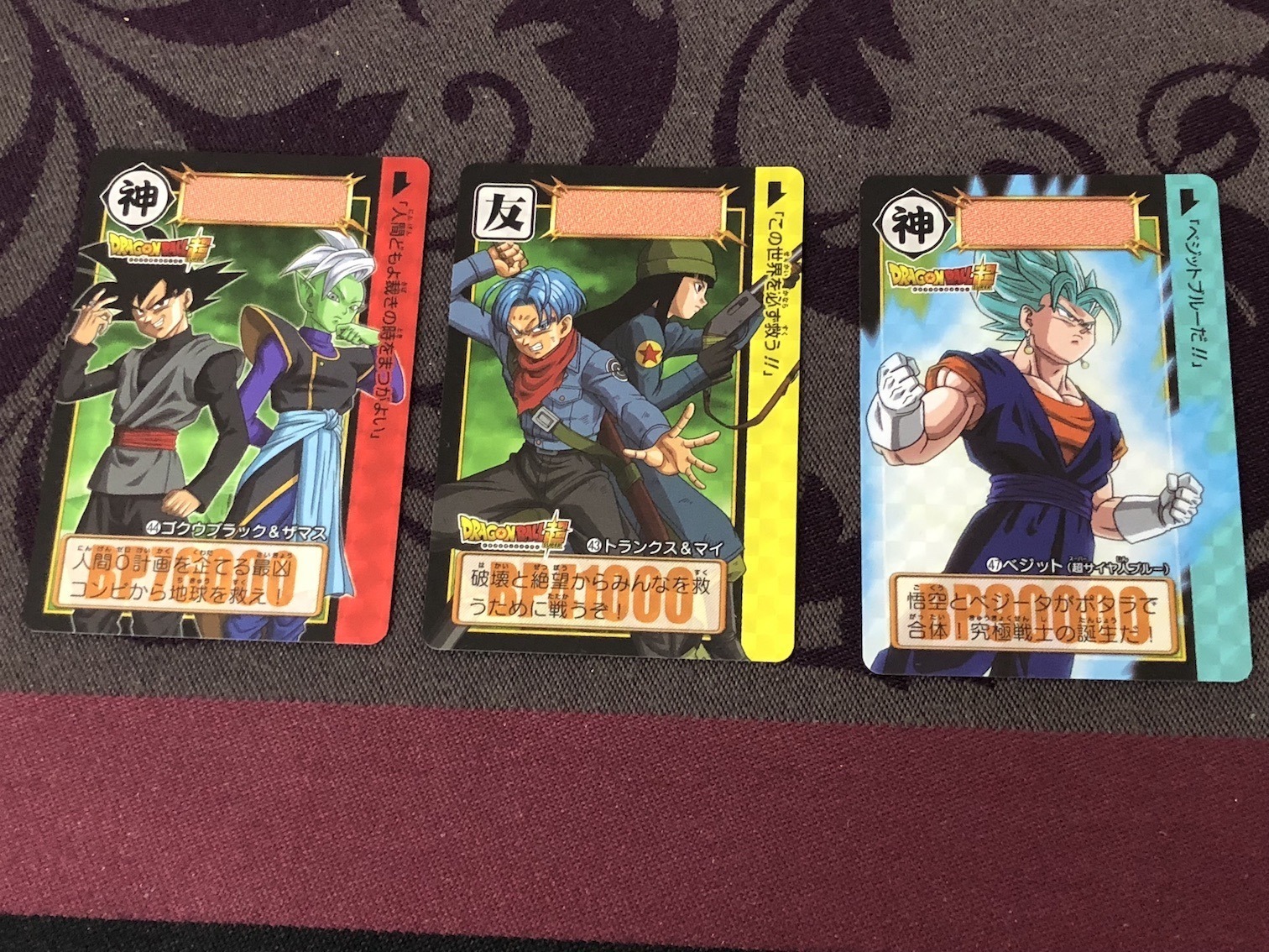 Depuis la sortie de Dragon Ball Super, Bandai a profité de cette occasion pour sortir la suite des cartes à collectionner de la série Dragon Ball Carddass Hondan. Quand on fait un petit calcul, on se rend compte que c’est la reprise d’une série de cartes qui s’était achevée il y a dix huit ans !