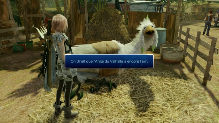 La prise en main se déroulait dans les terres sauvages, une vaste étendue où le joueur n’est pas cantonné à couloir. On peut donc s’y balader pour découvrir tous les environnements aux risques de tomber face à des ennemis bien plus forts que soit. Le point de départ était un village VIVANT. Pourquoi j’insiste sur ce terme ? tout simplement car ce village propose des PNJs qui vaquent à leurs occupations, proposent des quêtes et sont pour la plupart interactifs à la manière des anciens Final Fantasy. On peut discuter avec eux et même si cela n’apporte rien de plus, cela rend le monde de Lightning Returns plus cohérent.
