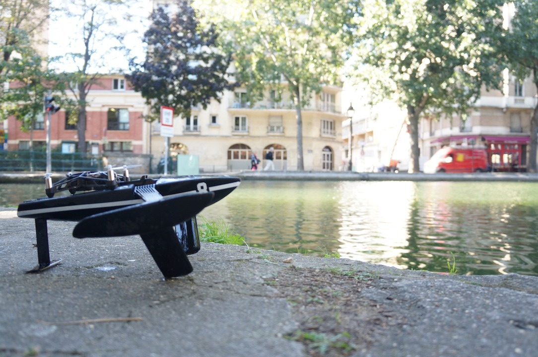 C’est lors d’un doux apres midi de septembre que j’ai eu l’occcasion piloter le nouveau drone de Parrot sur le canal Saint Martin en face de leur locaux. Oui vous avez lu. Le drone Parrot hydrofoil s’attaque à l’eau cette-fois et le plaisir est encore là !