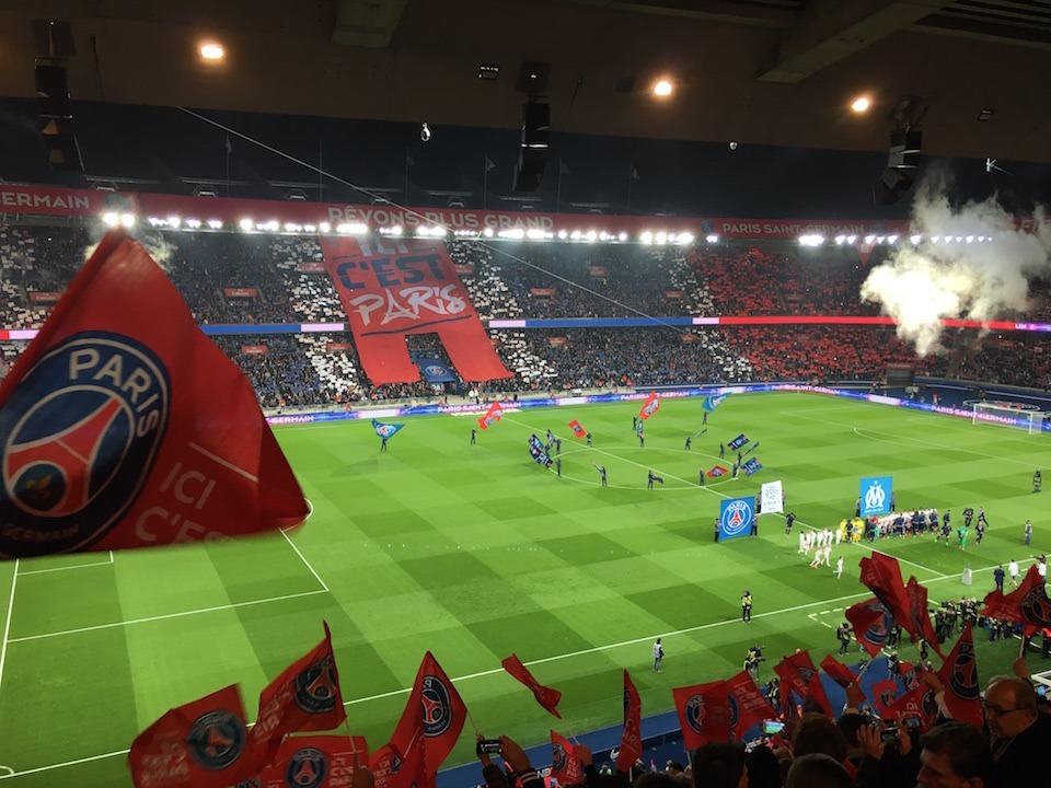 Le quatre octobre dernier, j’ai eu la chance d’assister au match PSG – OM au Parc des Princes ! Installé en tribune Borelli (417 porte K), j’avais une vision globale du terrain. C’est ce que j’aime au Parc des Princes comparé au Stade de France, où que l’on soit on voit bien les joueurs et le terrain. C’est dû en partie à l’abscence de piste d’athlétisme autour du terrain. Bref mon premier classico qui, s’il n’a pas été le match du siècle, a proposé quelques émotions tout de même.