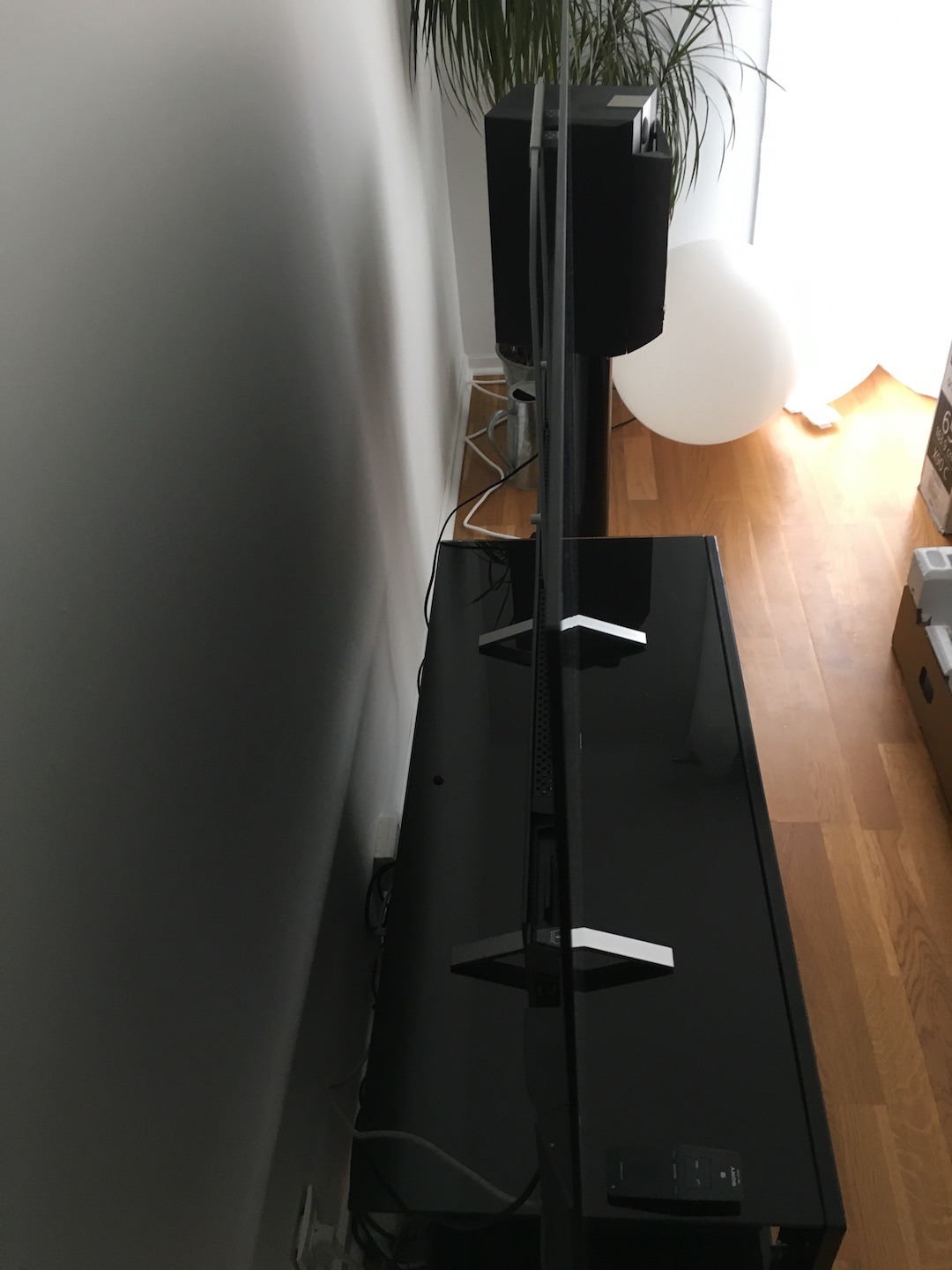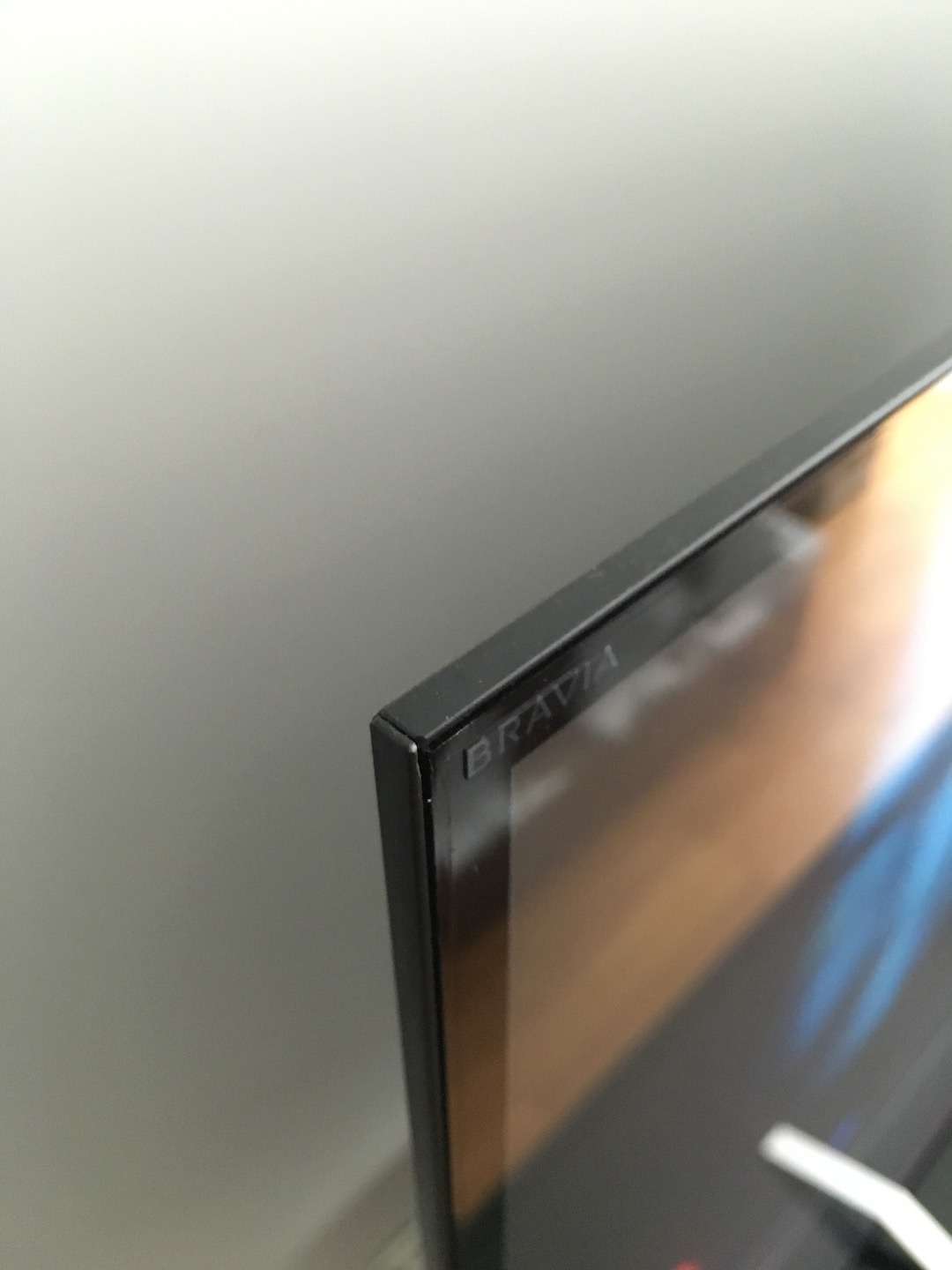 La télévision la plus fine qui existe ? Sans doute, en tout cas, c’est assez bluffant. Je l’imagine fixé au mur… ce doit être top. En tout cas, il est possible de mettre les pieds soit à ces extrémités soit plus au centre. Pratique pour ceux qui ont des meubles peu larges. Le cadre est très fin, ce qui donne une impression « infinie » de l’image, comme si elle n’avait pas de limite. Toute l’électronique se situe dans la zone basse de la TV dont l’épaisseur n’est déjà pas très importante. Du coup, j’ai vraiment flippé en la manipulant. J’ai dû la poser sur une table, à plat, pour pouvoir fixer les pieds. Vu la taille de l’engin, on a du s’y mettre à deux pour la basculer. La finesse de l’écran rend toute manipulation très risquée car la partie fine n’est pas super rigide (effet iPhone bengate garanti :p).