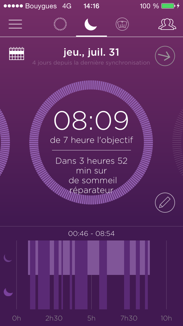 Ce qu’il faut comprendre : 08h09 sur un objectif de 7 heures. Dont 3 heures 53 min de sommeil réparateur