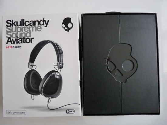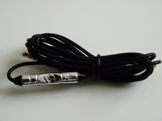 Coté design, même si les goûts et les couleurs sont ce qu’elles sont, je le trouve particulièrement réussi. Un look un peu rétro en total harmonie avec le nom du produit. Le logo tête de mort se fait assez discret de part et d’autre des charnières. Enfin les coques du modèle testé sont en polycarbonate noires légèrement transparentes à la lumière laissant entre apercevoir l’électronique qui se cache à l’intérieur. L’Aviator existe également en chrome, blanc, marron et rouge. Tout comme le packaging, le sans faute n’était pas loin. Si le cordon est détachable du casque à la base de la coque gauche (très pratique), la télécommande qui l’accompagne couleur imitation chrome est fait à partir d’un plastique douteux qui n’est pas très agréable au toucher et qui tranche avec la qualité du reste du casque.