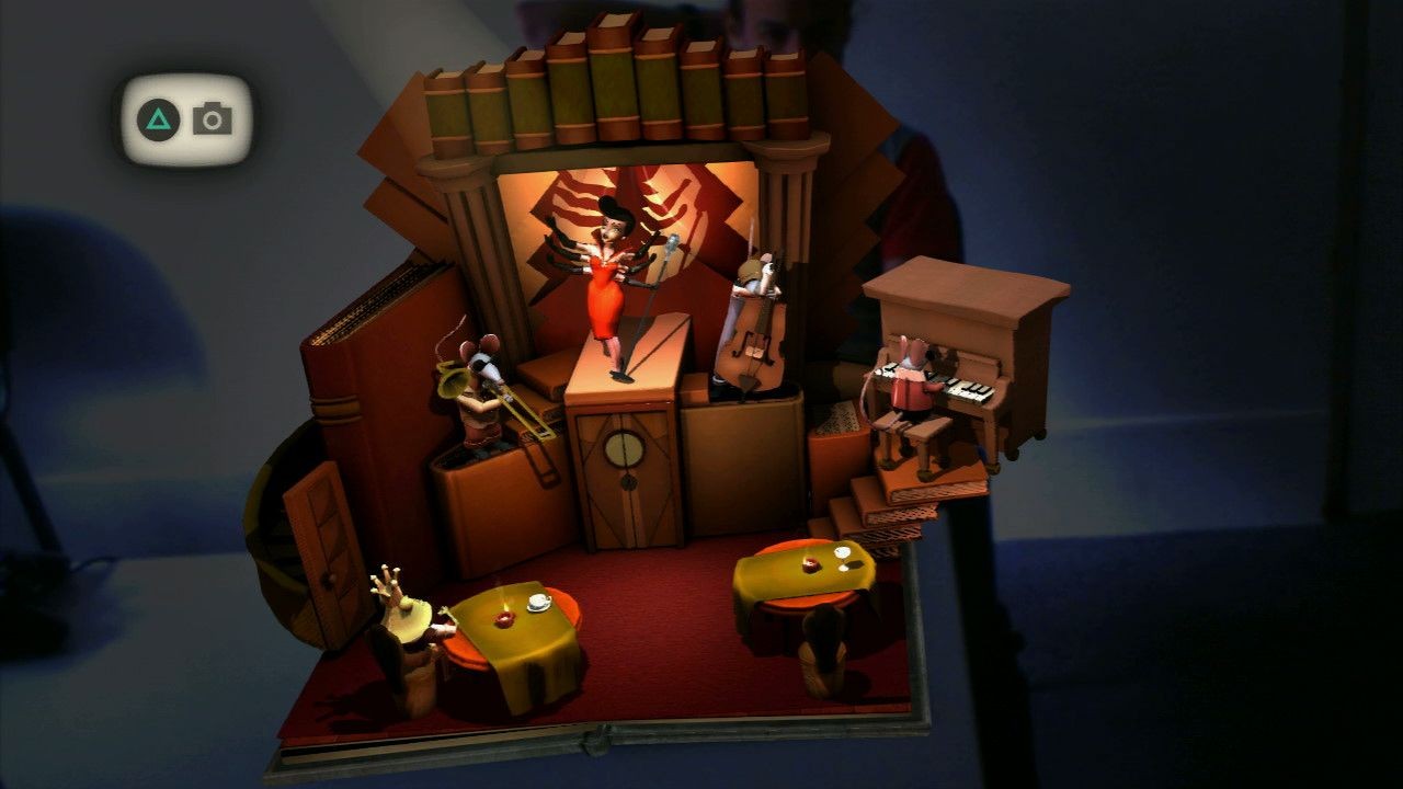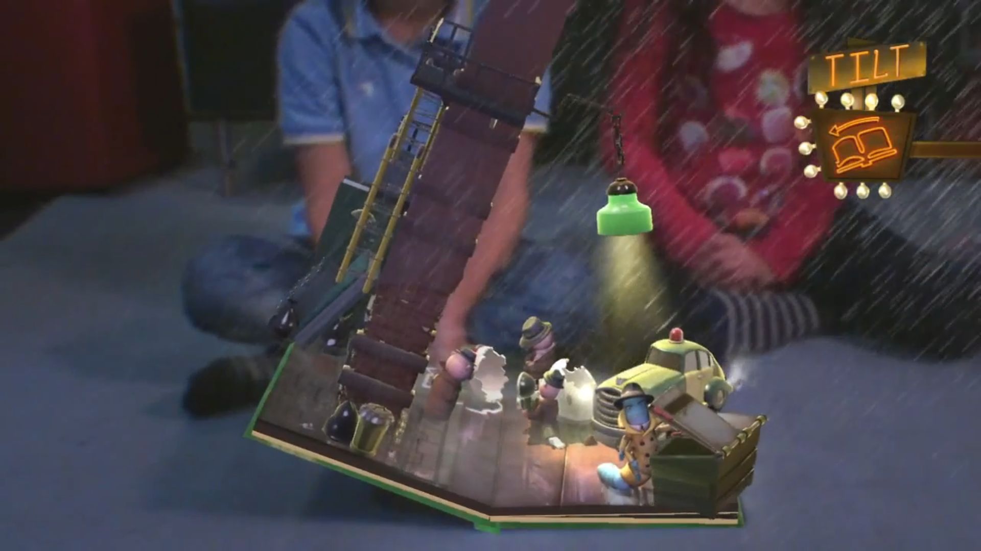 Diggs Nightcrawler : Détective Privé est jeu PS3 qui fonctionne avec le wonderbook, ce livre qui prend vie et qui émerveillera les plus jeunes. Car en effet, ce nouveau titre compatible est avant tout adressé aux enfants. Durant toute l’aventure, on aide Diggs le ver de terre a résoudre une enquête policière. Humpty Dumpty, l’oeuf, vient d’être assassiné. Alors que Diggs, détective privé, se met à enquêter sur le meurtre de son ami, voilà que les trois petits cochon (en mode Derrick) accuse Diggs. A nous d’aider Diggs à trouver le vrai coupable tout en prouvant son innocence. Le style polar des année 1950 est plutôt bien retranscrit et les références à des personnages d’autres contes raviront les plus jeunes. On y retrouvera l’araignée Gipsy, Robin des bois, Frankenstein et les trois petits cochons dans le rôle de la police pas très futée. L’immersion du joueur est plutôt réussi car Diggs n’hésitera pas à s’adresser à nous pour nous faire part de ses reflexions ou pour nous pousser à agir avec discernement avec le livre pour trouver des indices.