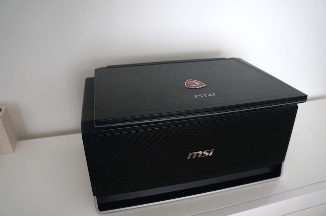 Concrètement, je trouve cette solution vraiment top. D’une part car j’aime bien avoir un portable léger à emmener partout notamment pour faire du blogging. Et d’autre part j’aime bien pouvoir jouer à des jeux avec les performances au max. Sauf que les deux sont plutôt inconciliables. Mon autre problème est que je n’ai pas vraiment de place chez moi pour installer une tour et un écran. Pas de pièce dédiée ni de bureau attitré pour y mettre une jolie config. La solution de MSI s’adapte du coup parfaitement à mon lieu de vie. Je sors la gaming dock que je branche sur la TV dès que je veux jouer. Le dock par sa taille réduite prend très peu de place à stocker. Le reste du temps, j’utilise l’ultrabook qui sait se faire discret lorsque je ne l’utilise pas.