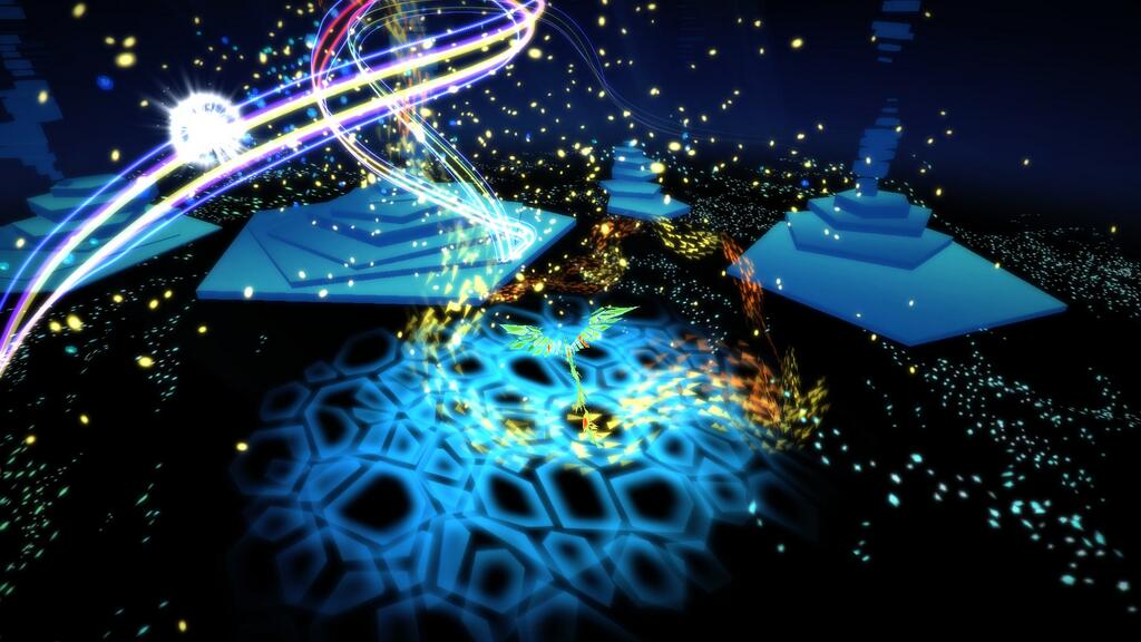 Chaque stick de la manette permet de contrôler l’un des protagonistes. Le but est de parcourir un tunnel en traversant des formes géométriques placées à intervalles réguliers correspondant aux couleurs de l’oiseau ou du poisson. Chacun des animaux peut se déplacer sur la moitié de l’écran. En plus de traverser les différentes formes, il faudra récupérer des boules de lumière qui rempliront une jauge située en haut de l’écran. Une fois cette jauge pleine, la vitesse et la musique s’accélèrent. Le but étant à ce moment là de faire un sans faute. Au bout d’un court laps de temps, l’oiseau et le poisson s’uniront en un être supérieur qui sera contrôlable dans un tableau spécifique, où il n’y a pas grand chose à faire à part admirer le paysage, avant de passer au chapitre suivant.