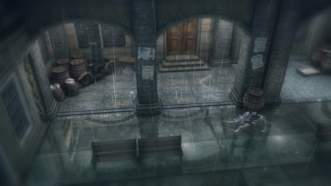Dans Rain, on prend le contrôle d’un jeune garçon qui se réveille, sort de son lit et comme happé par une force invisible suit une fillette dans la rue. Passant une sorte de portail, on se rend compte que la ville est vide, qu’il ne reste que la pluie … Cette pluie qui nous rend visible quand elle nous tombe dessus. Car oui, par une étrange malédiction, le jeune garçon est devenu invisible au monde. Finalement, le joueur à travers le jeune garçon est mué par un seul objectif : retrouver la fille sous le coup de la même malédiction et lui demander ce qu’il se passe. S’ensuivra une aventure que je ne vous dévoilerai pas plus tant elle fait partie intégrante du jeu.