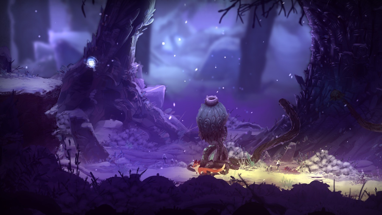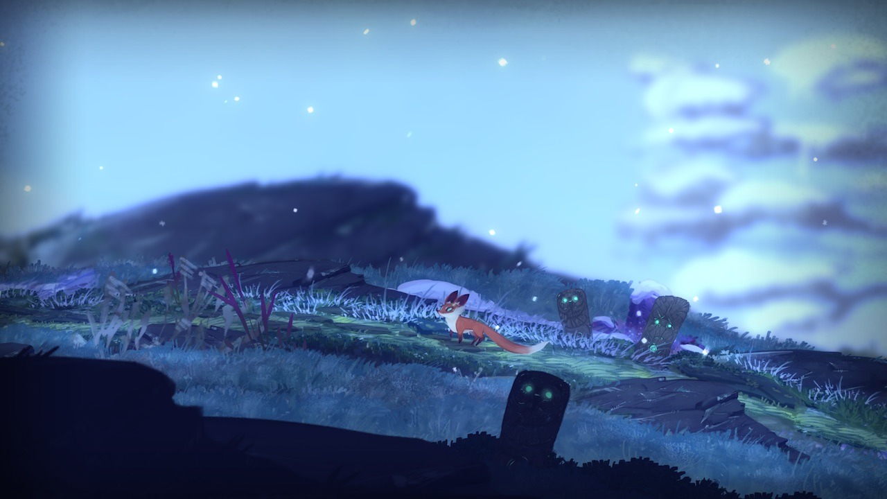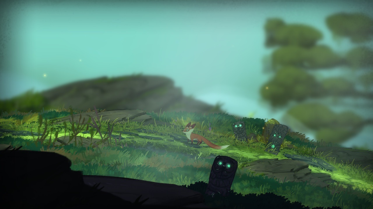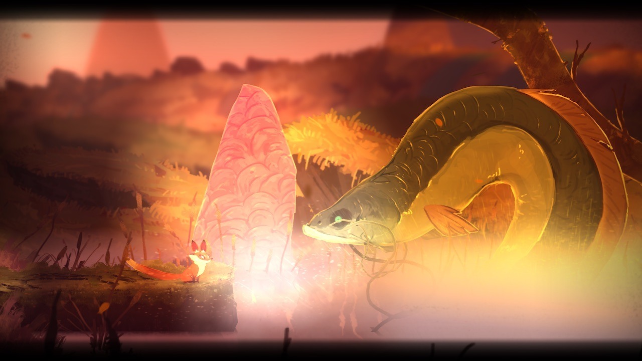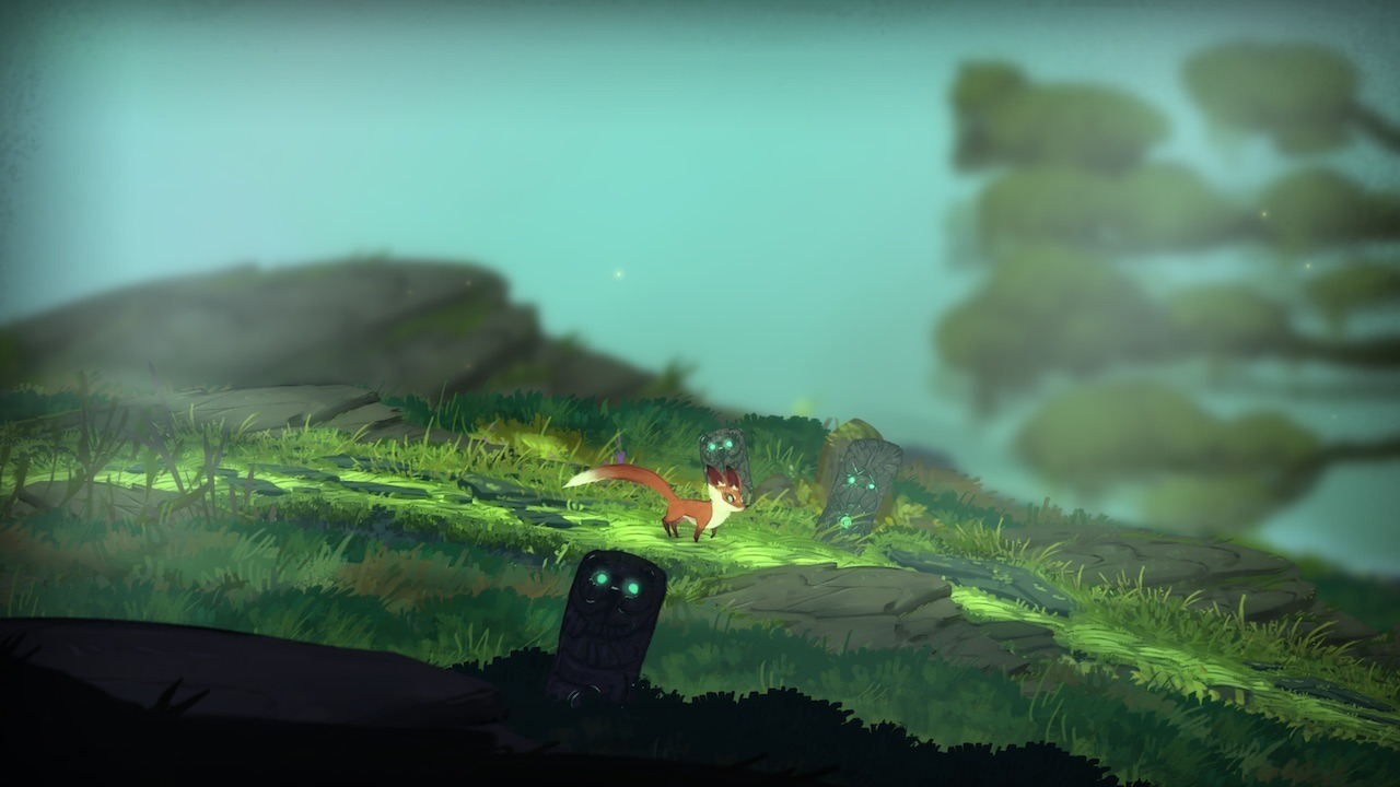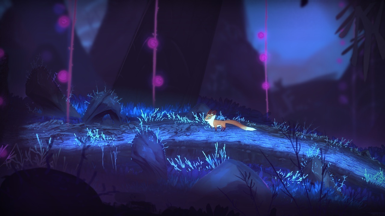 Seasons after fall brille par sa direction artistique ! Chaque écran est un appel au beau et à la poésie. Ces impressions sont renforcés par la bande son exceptionnel du jeu et à la voix off toute droite sortie des contes pour enfants. Le jeu nous permet d’incarner un renard qui devra se mouvoir dans un univers 2D. D’un mouvement du stick droit, on peut contrôler les quatre saisons (une fois acquise). Comme vous vous en doutez, cela permet de modifier le paysage. Et il faudra donc jouer avec ce pouvoir afin de progresser dans le dédale que nous propose le jeu.