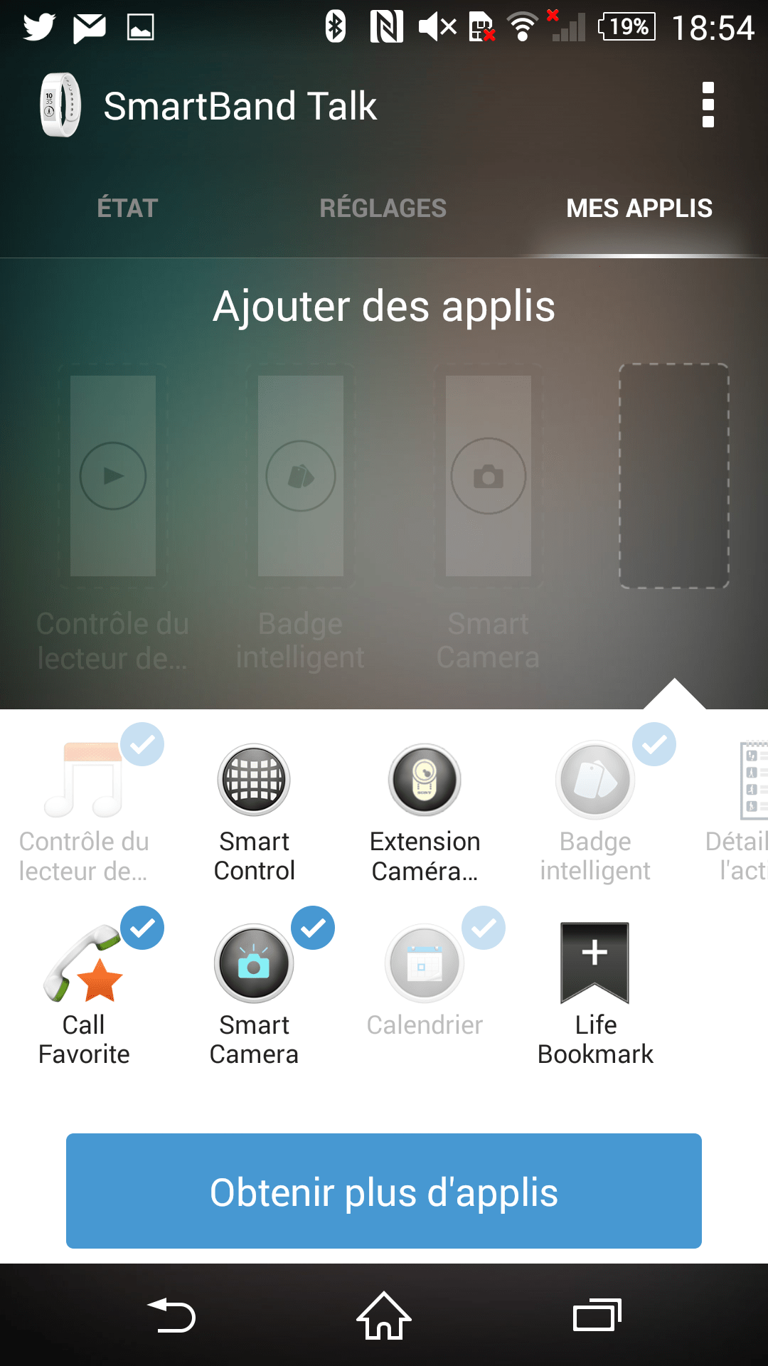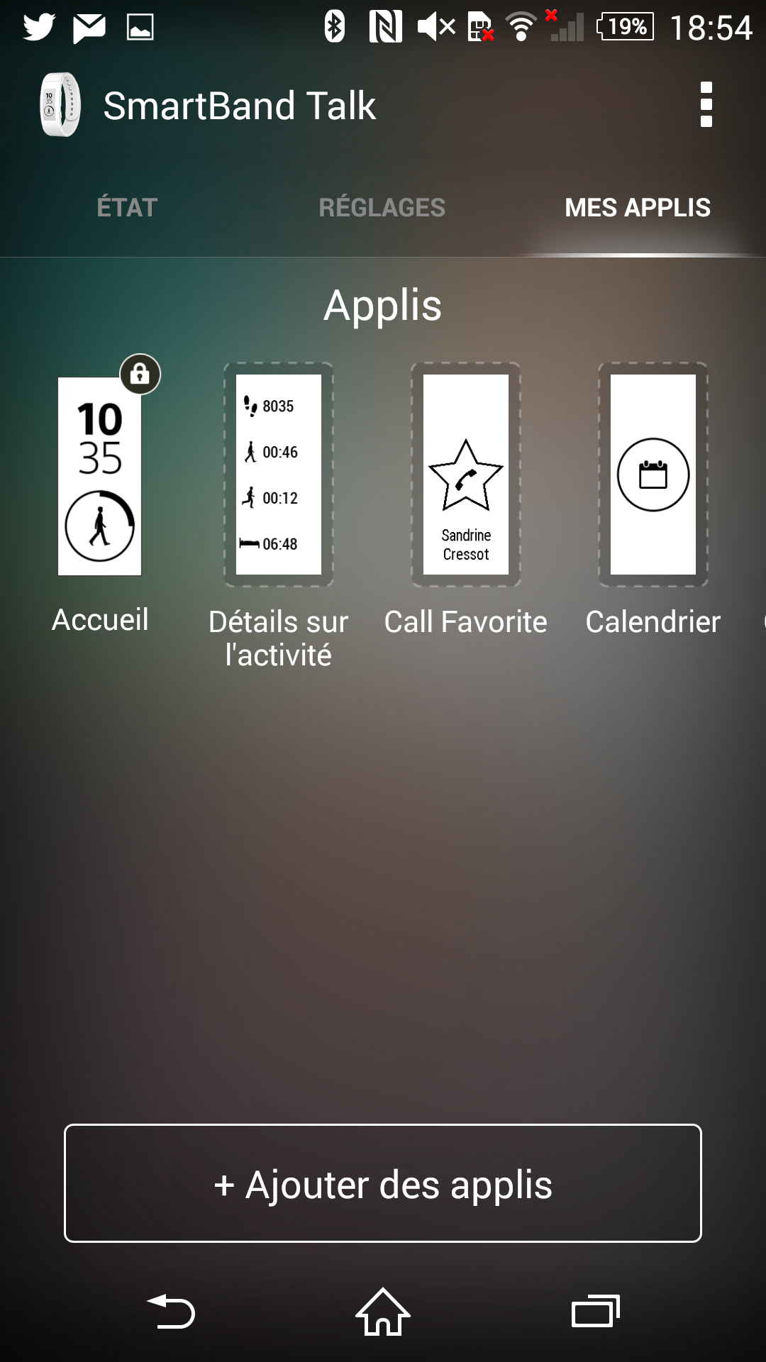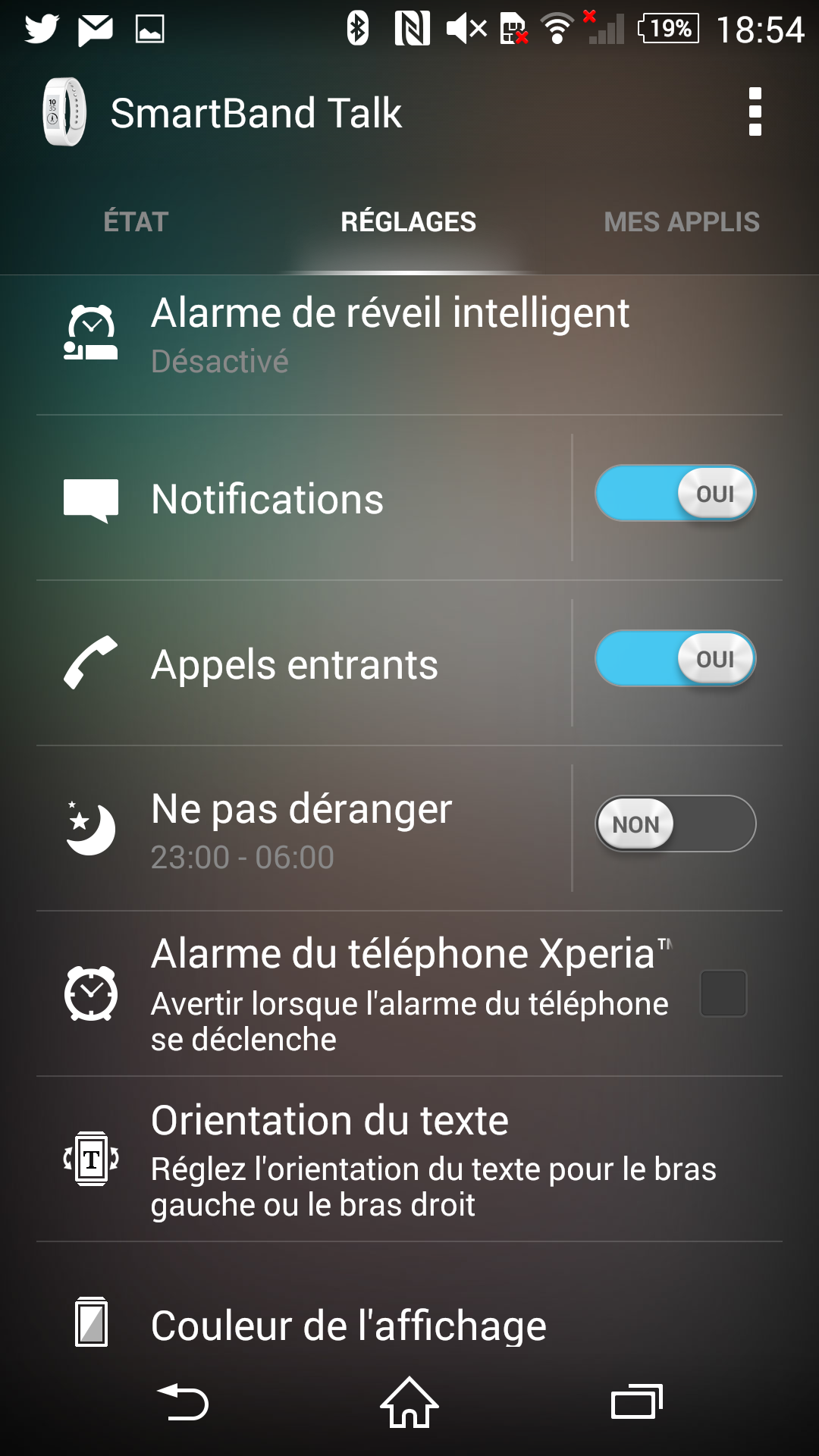 Synchronisé à son smartphone Android, le Smartband Talk dispose d’une application dédiée. Celle-ci permet de paramétrer le bracelet et d’ajouter (ou d’enlever) des fonctionnalités. Durant mes deux semaines de test, je n’ai finalement utilisé le bracelet que comme second écran de mon smartphone. En gros voir qui m’appelle et récupérér toutes les notifications sans à avoir à sortir mon mobile de la poche.