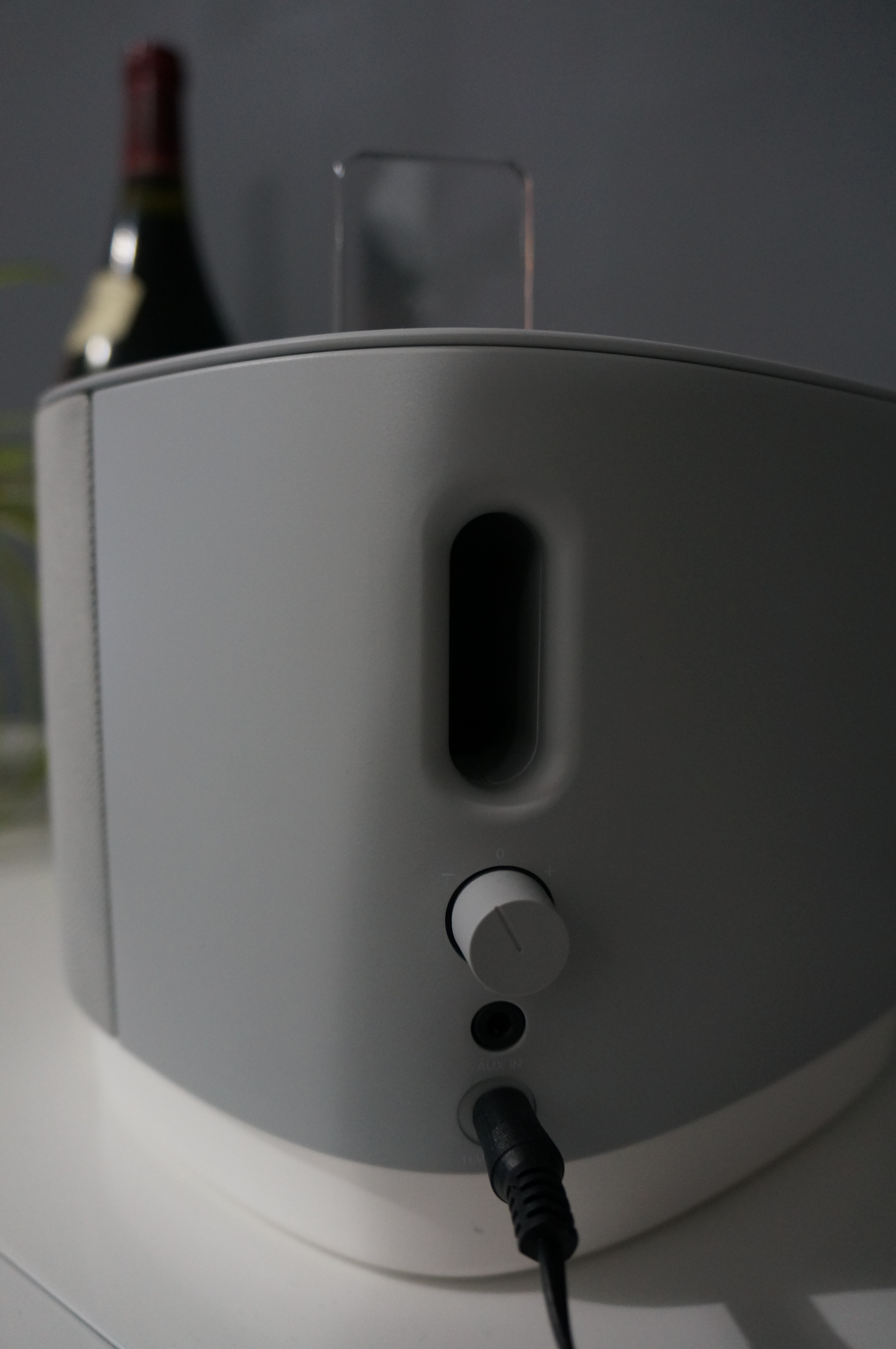 Concernant le son, le Studio 5 de Nude Studio souffle le chaud et le froid. D’un coté sa forme ovoïde propose un son à 360° et, il faut bien l’avouer, une spatialisation intéressante. De l’autre, un son étouffé qui manque singulièrement de clarté. Il est possible de régler le niveau de basse à l’aide d’un bouton qui se situe à l’arrière de l’enceinte. On sent une net différence entre les deux positions extremes. Malgré cela, impossible de retrouver un son clair et précis.