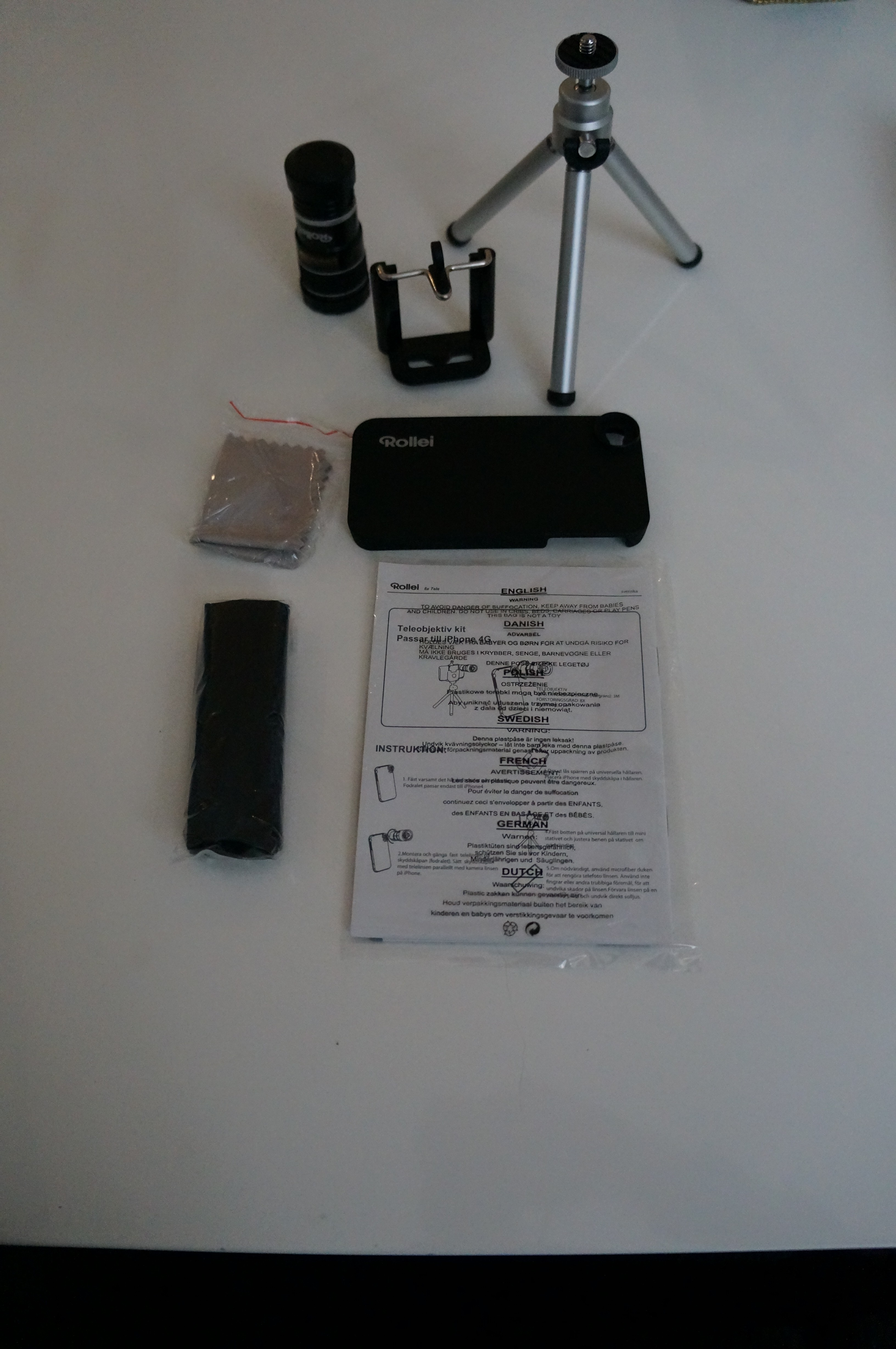J’ai reçu il y a quelques jours le téléobjectif Rollei 8X pour iPhone 4/4S de la part de mon partenaire IAXESS. Et le moins que l’on puisse dire, c’est que si le principe est plutôt intéressant, la qualité n’est pas au rendez-vous. Pourtant le packaging est plutôt généreux. On y retrouve le téléobjectif dont la structure est en plastique (d’où le prix plutôt bas), une coque pour le fixer, un mini-trépied, un chiffon et une notice.