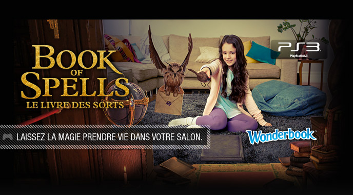 Dans la catégorie des jeux qui devrait plaire aux enfants pour Noël, j’appelle Wonderbook : Book of Spells. Ce jeu met en scène une nouvelle fois le playstation move sur PS3. Mais ce coup-ci, un autre accessoire entre en jeu. Il s’agit d’un livre qui à première vue ne sert à rien : pas d’images ni de textes. En faite celui-ci révèle son contenu grâce au playstation eye, la webcam de la PS3. En effet, il sera question de réalité augmenté. Le livre s’animera à travers votre écran TV. Mais comment ça marche ? En faite la webcam vous filmera et affichera ce qu’elle capte sur l’écran de votre télévision. Là où cela devient intéressant c’est qu’elle transformera le playstation move que vous tenez en baguette magique et sera capable de voir le livre de sort et de le faire vivre avec tous un tas d’animation.
