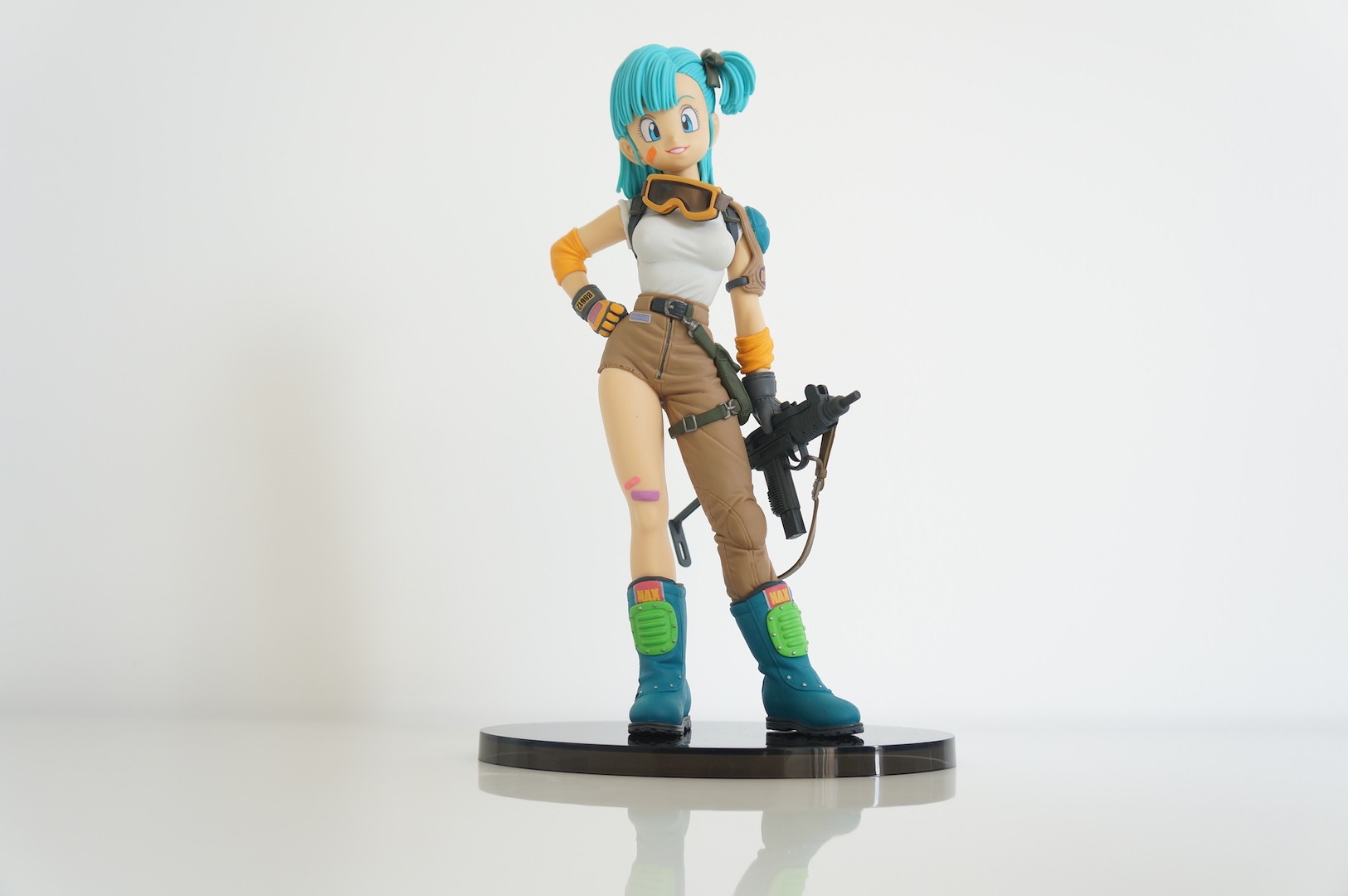 Je reprends les photos des figurines que j’ai ramené en juin dernier de mon voyage au Japon. Cette fois-ci il s’agit de la figurine Dragon Ball SCultures Bulma. Il s’agit d’une figurine à monter en deux parties. Deux accessoires sont également inclus (lunette et mitraillette) pour équiper notre chère aventurière sur les traces des Dragon Balls.