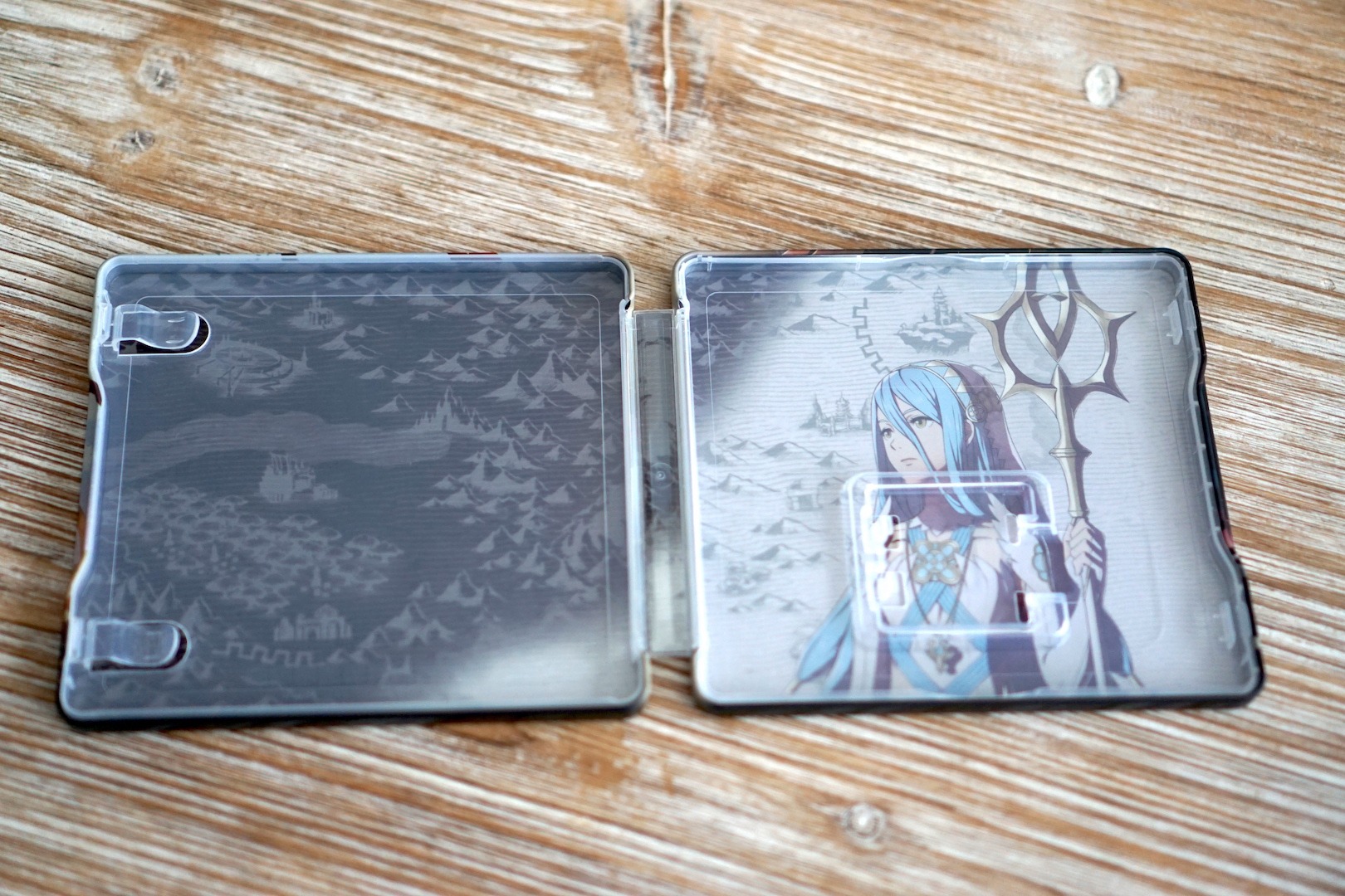 On retrouve dans Fire Emblem Fates – édition Limitée un magnifique steelbox aux couleurs du jeu. Je ne savais pas que des steelbook existait pour les jeux 3DS. Belle surprise en tout cas car il est très quali ! Les visuels extérieurs représentent les deux royaumes qui se déchirent. L’intérieur jouit également d’une impression de Azura qui comme on le devine jouera un rôle prépondérant dans cette aventure.