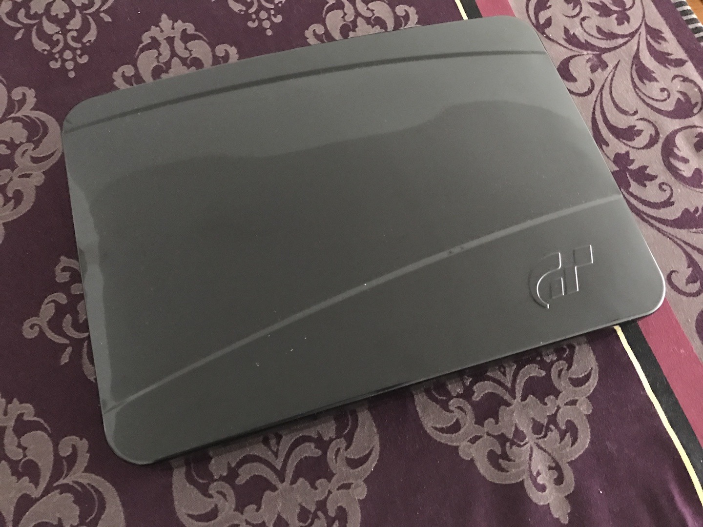 La boîte du Press Kit ressemble comme deux gouttes d’eau à celle de la Signature Edition qui était vendue au grand public. Elle rappelle un capot de voiture de par sa forme et sa matière en métal noir brillant. Le sigle « GT » est thermoformé sur le couvercle de la boîte pour rappeler qu’il s’agit bien du Press Kit Gran Turismo