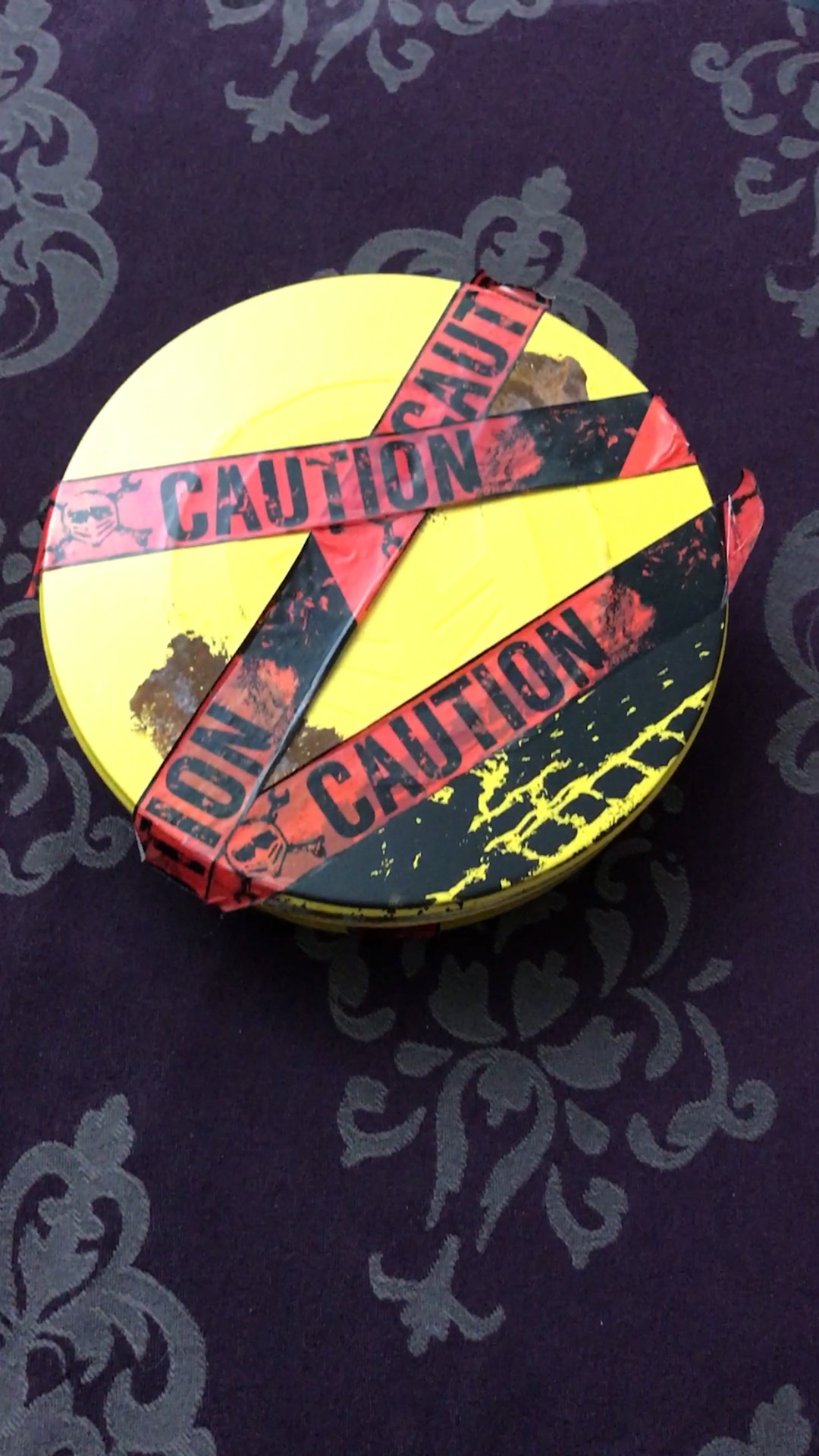 Le Press Kit prend la forme d’une boite en métal qui rappelle celles utilisées pour ranger des pellicule de film. Celle-ci arbore trace de pneu et rouille pour bien nous mettre dans le bain de l’univers du jeu. Des bandelette « Caution » (« mise en garde » en français) scelle la boite ! Nous voilà prévenu !