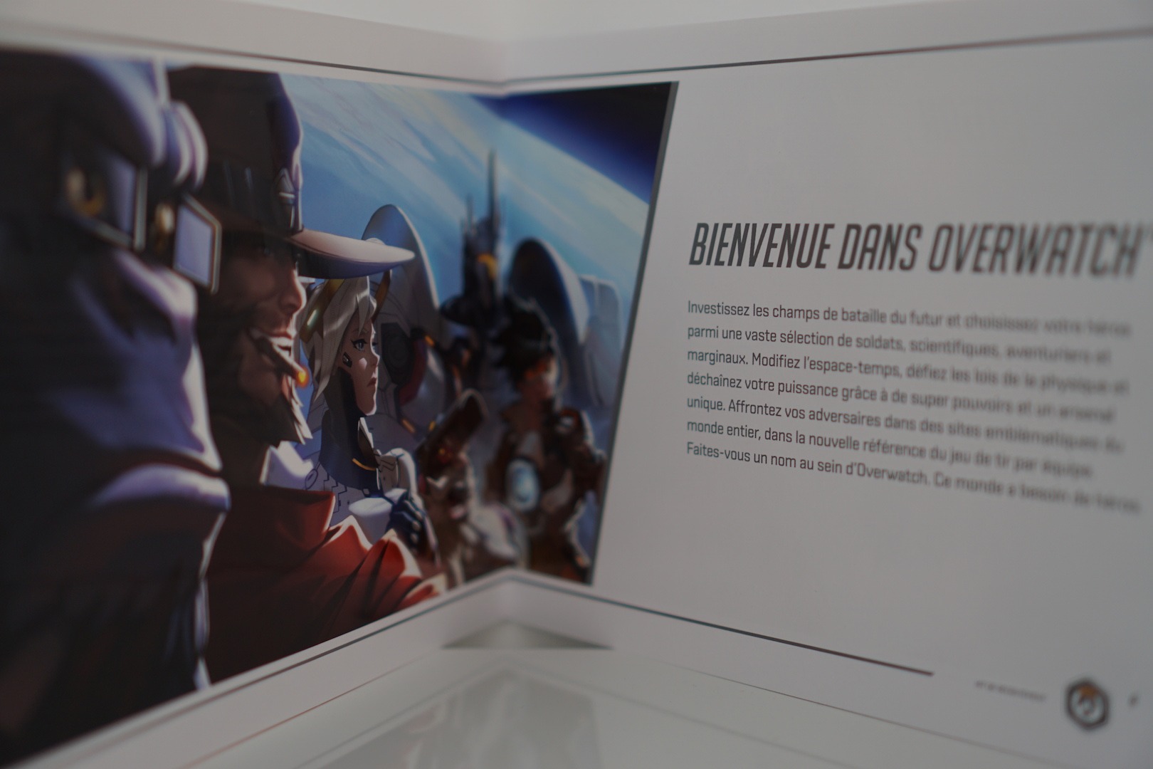 Tout d’abord un dossier de presse qui nous immerge dans l’univers d’Overwatch. Ce petit livret en papier glacé nous fait un topo des forces en présence. On y retrouve également un focus sur toutes les maps du jeu.